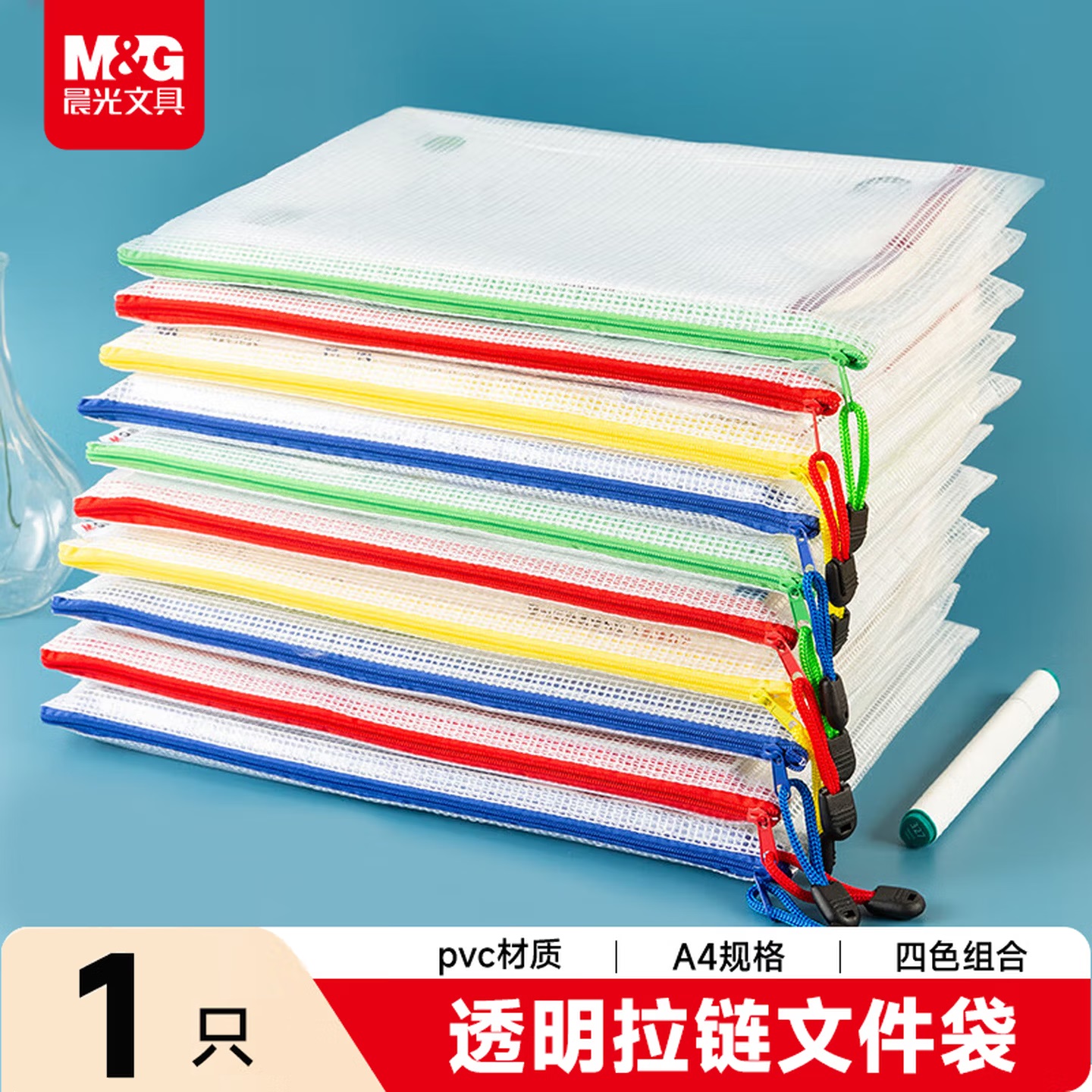 齐心 A1154 方型网格 透明 拉链袋 A4 PVC材质 330×240mm