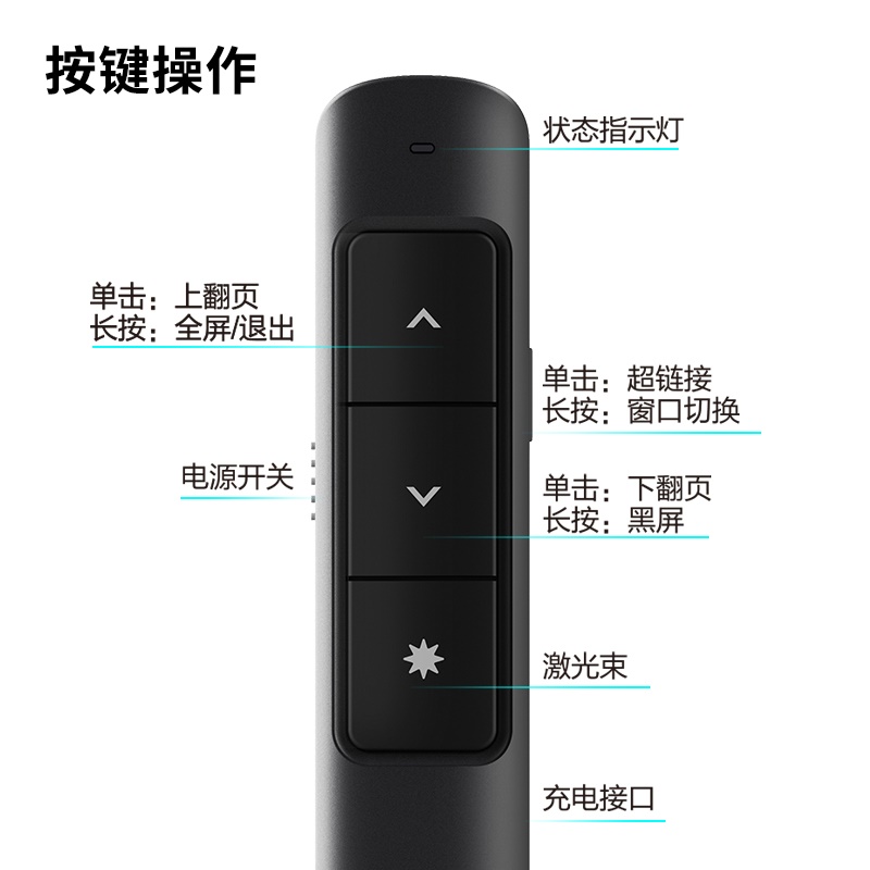 • 商品名称:得力 2808L PPT翻页激光笔 红色激光 黑色 充电款