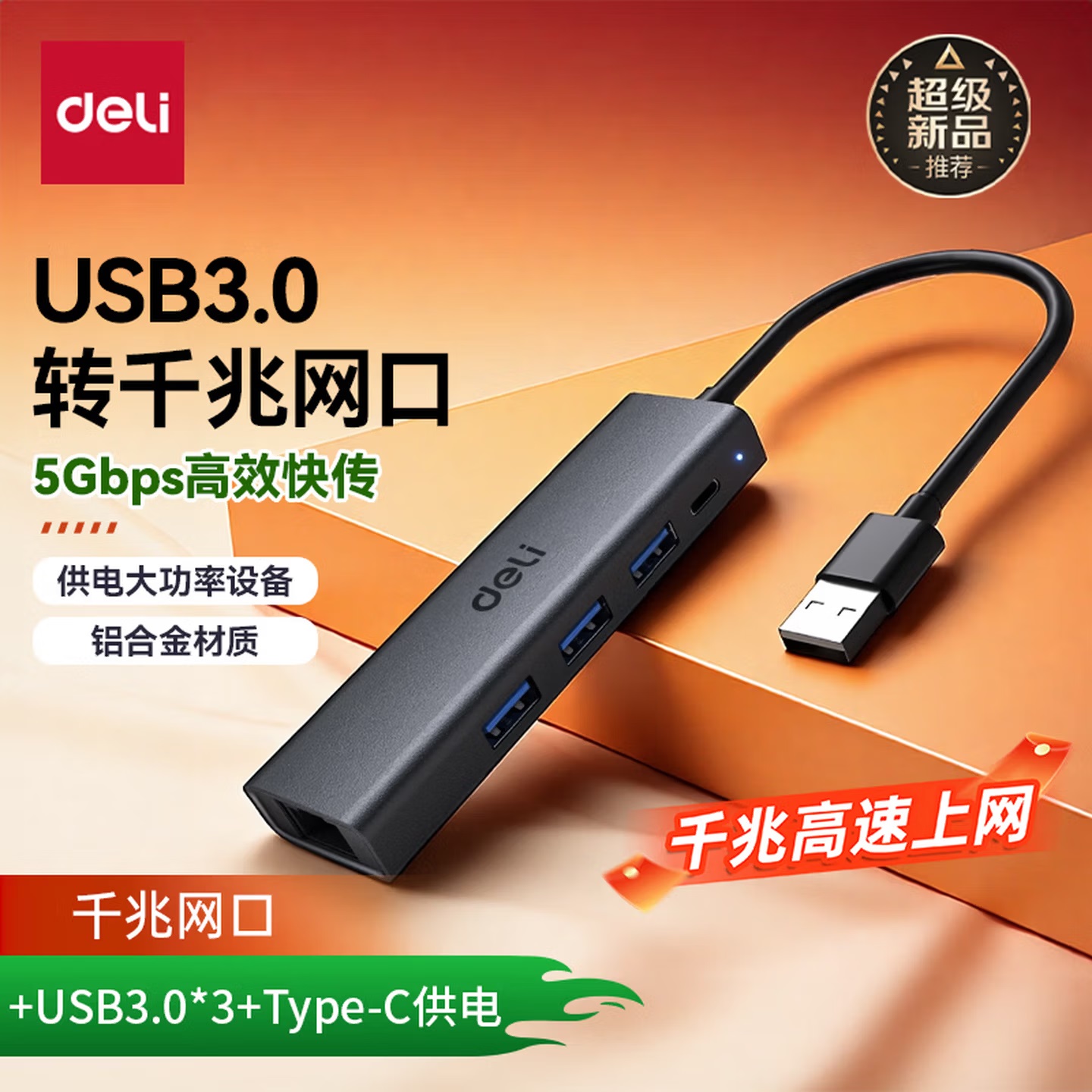 • 商品名称:得力AK753五合一 多功能高速扩展坞 Type-C转千兆网口