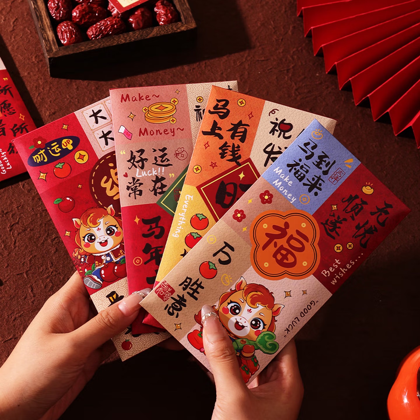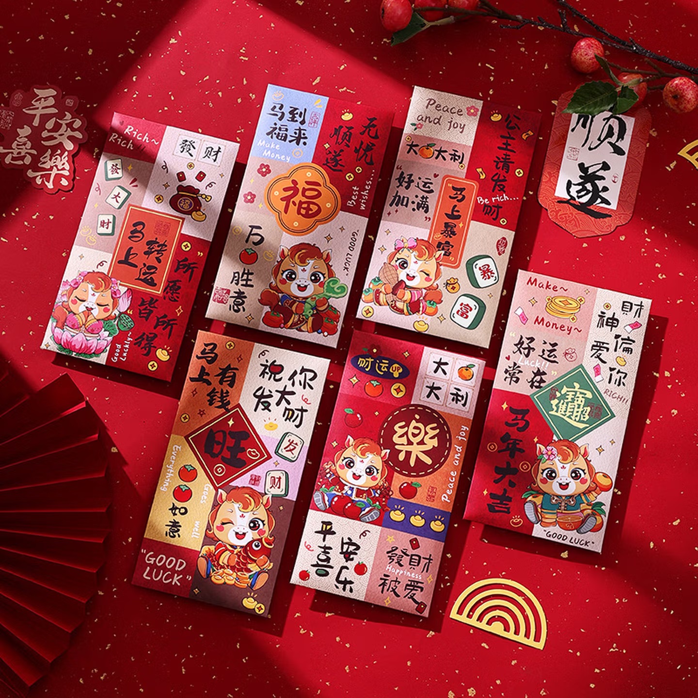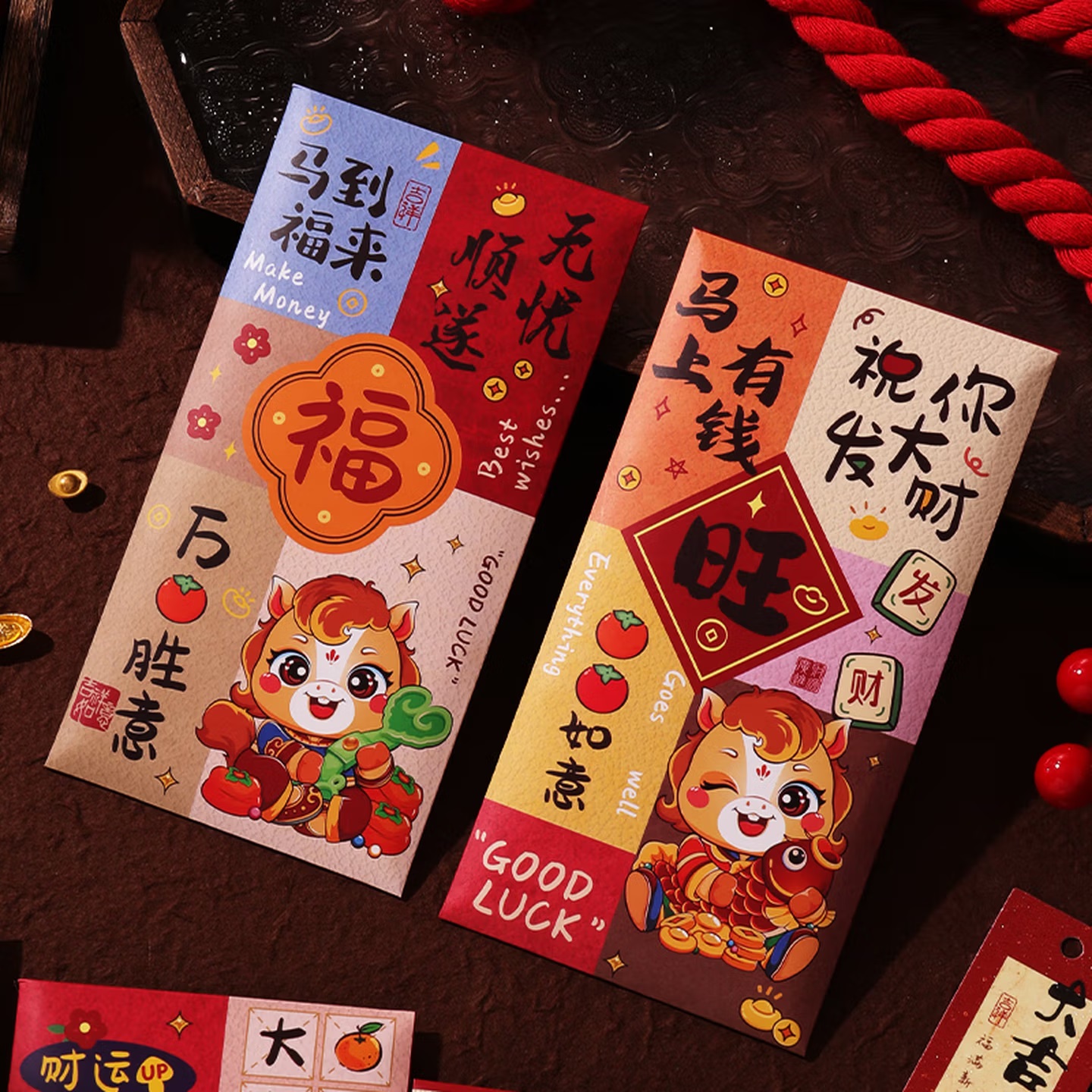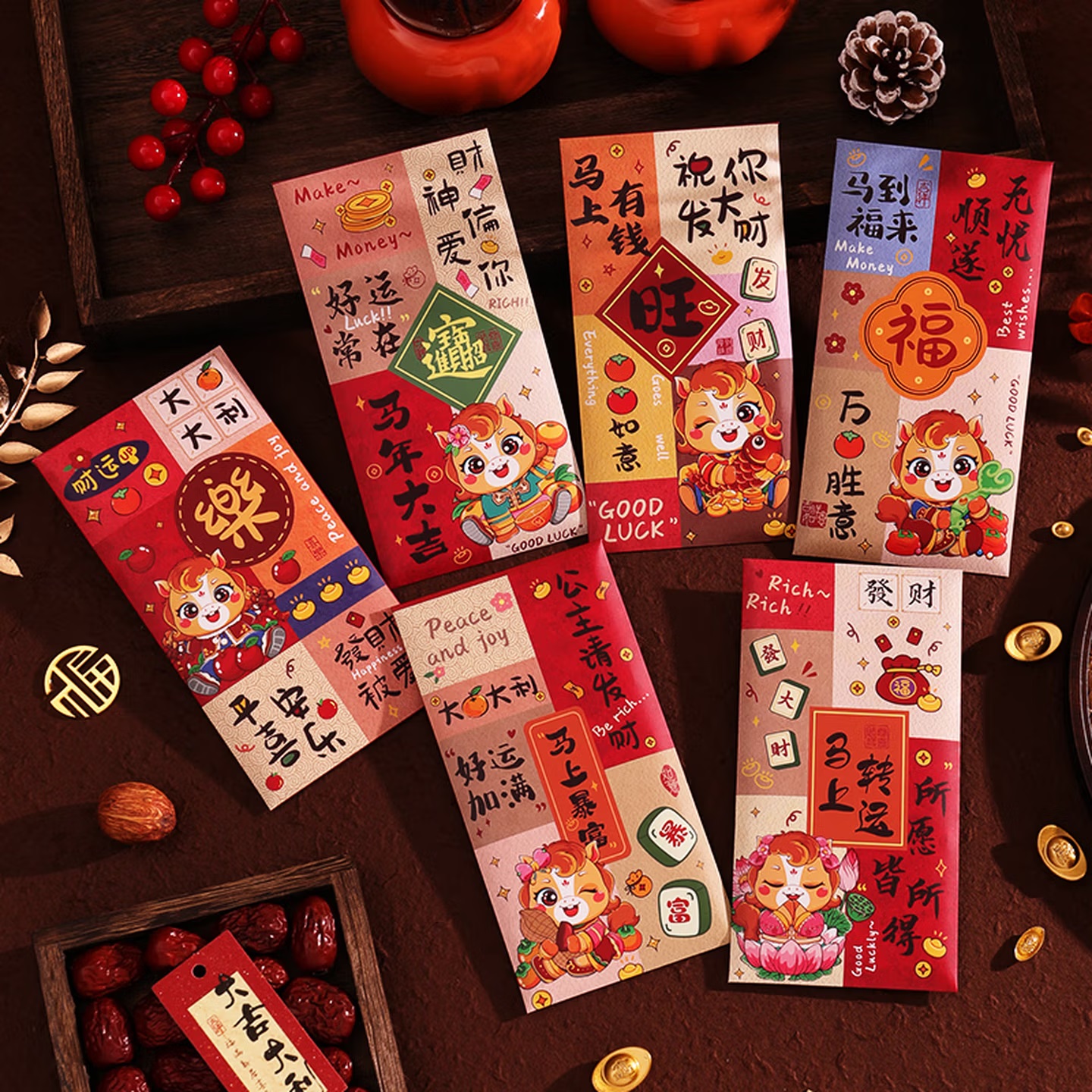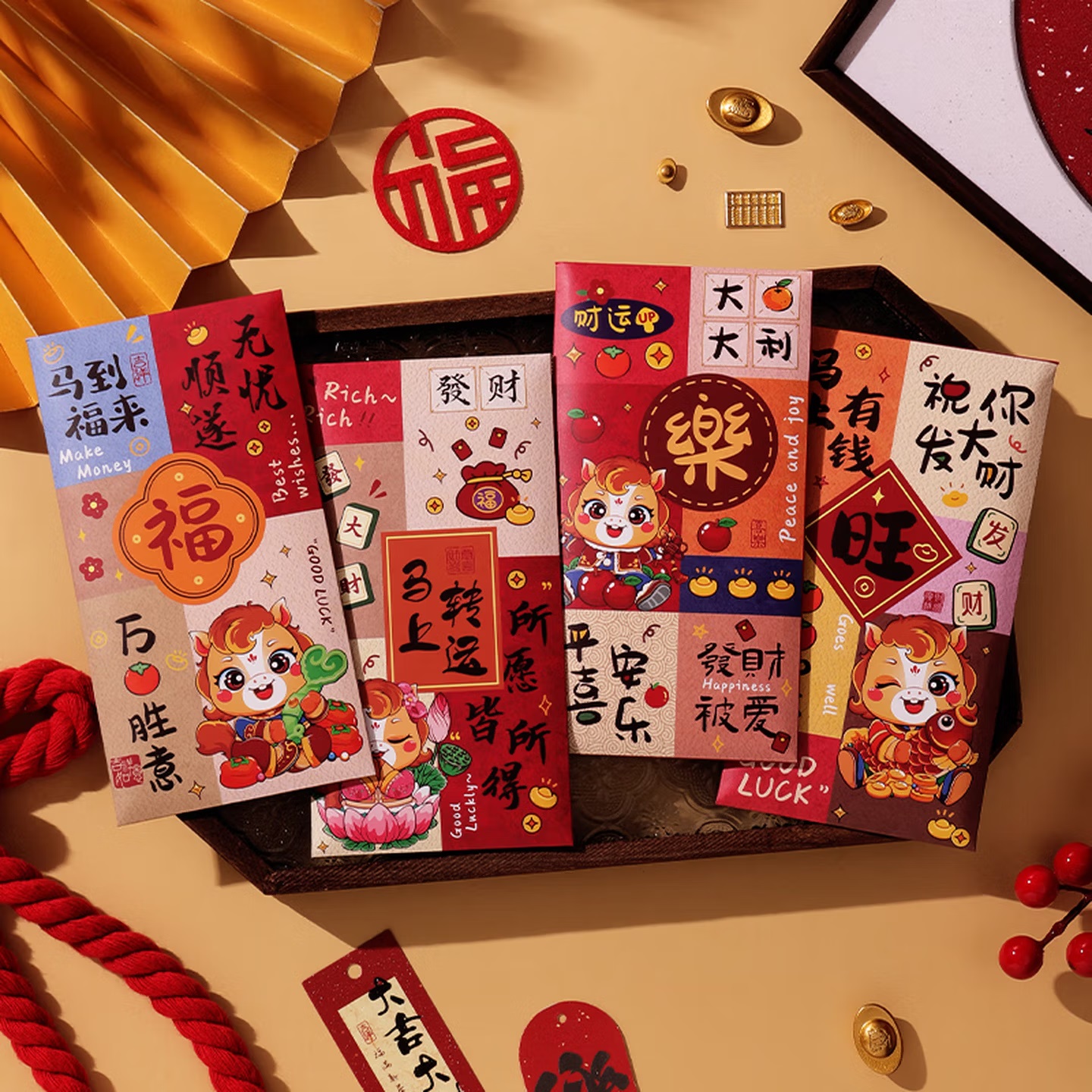会议展示 年会庆典 泓喆 M05 马到福来 新款国潮彩印红包 6个装 85mm×165mm...