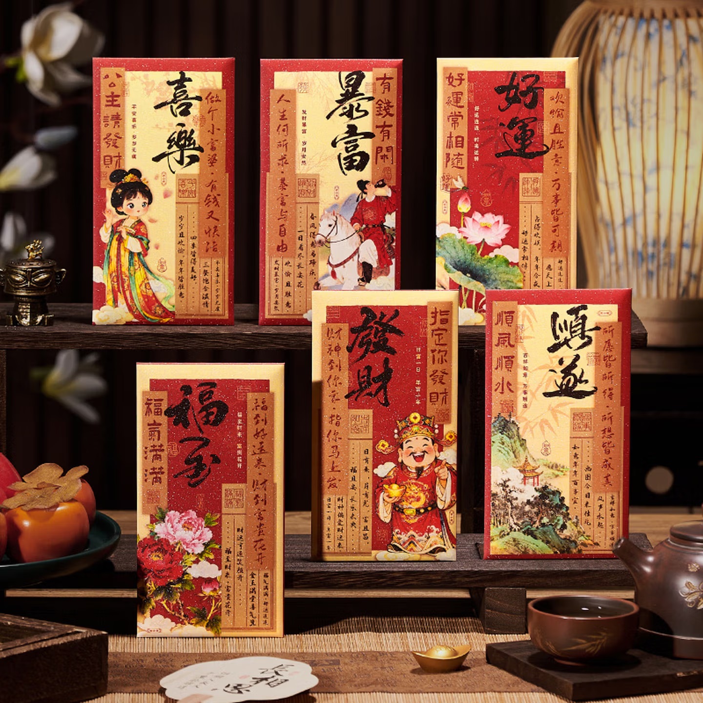 会议展示 年会庆典 泓喆 C03 福气满满 新款国潮彩印红包 6个装 85mm×165mm...