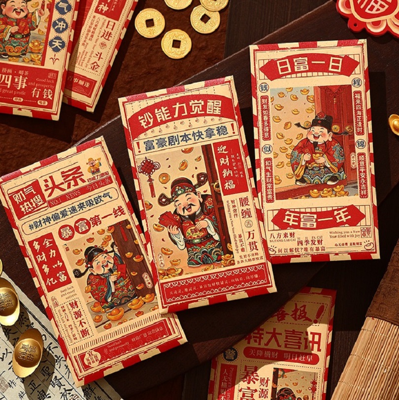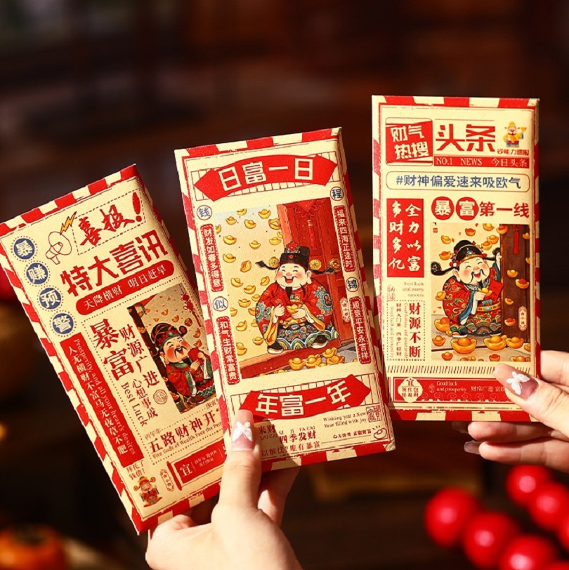 泓喆 C31 财神日报 新款国潮彩印红包 6个装 85mm×165mm