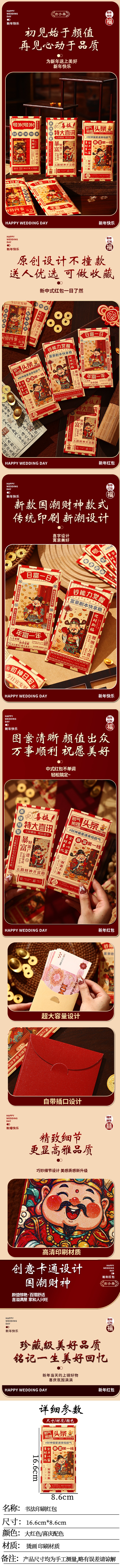 会议展示 年会庆典 泓喆 C31 财神日报 新款国潮彩印红包 6个装 85mm×165mm...