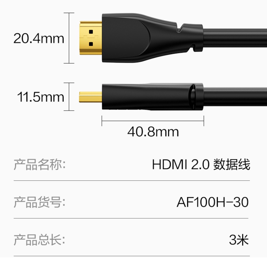 • 商品名称:得力 HDMI 4K高清2.0版 据数线 3.0米 经典款AF100H-30