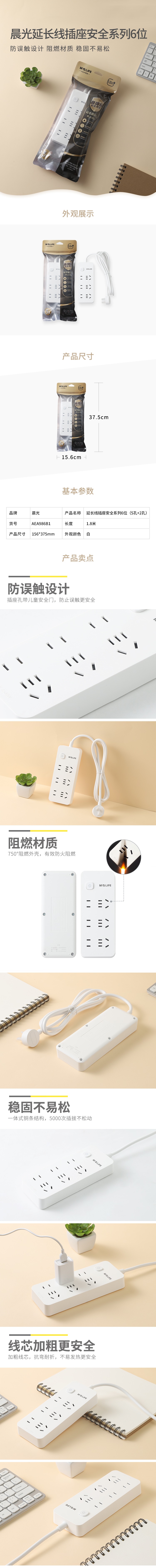 • 商品名称:晨光AEA986B1新国标 六位插座 1.8米 2500W 10A