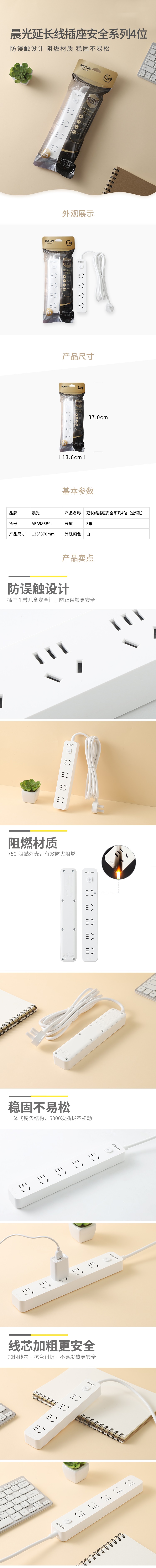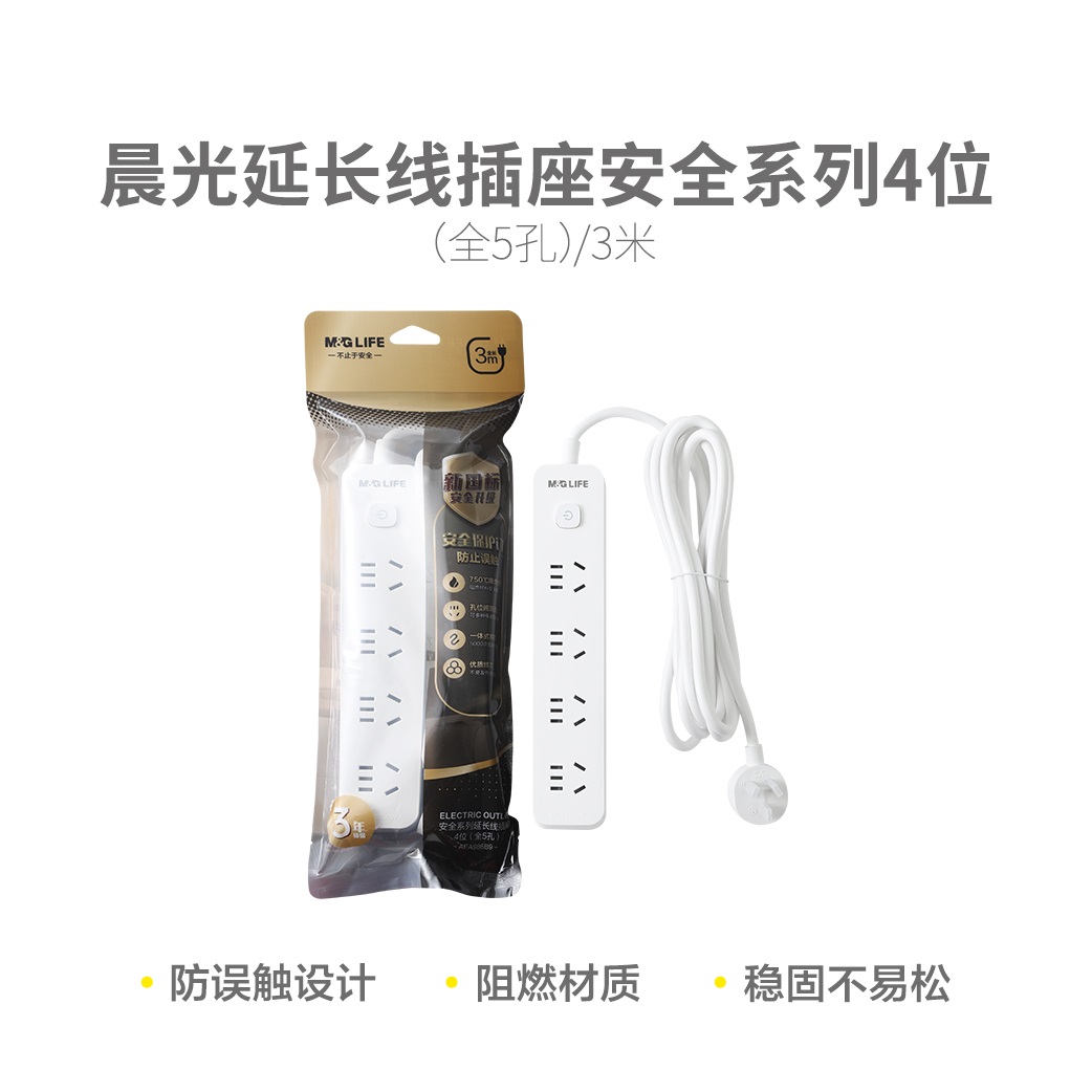 • 商品名称:晨光AEA986B9新国标 四位插座 3.0米 2500W 10A