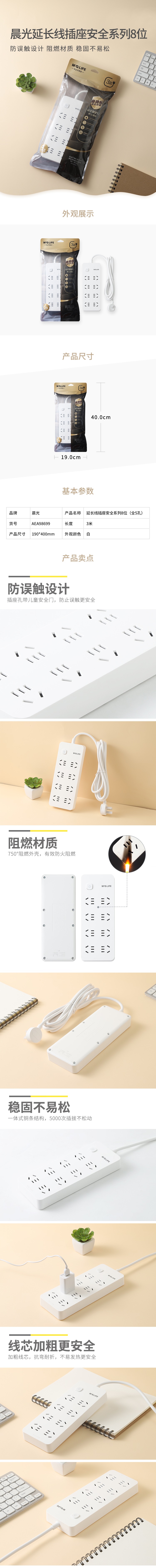 • 商品名称:晨光AEA98699新国标 八位插座 3.0米 2500W 10A