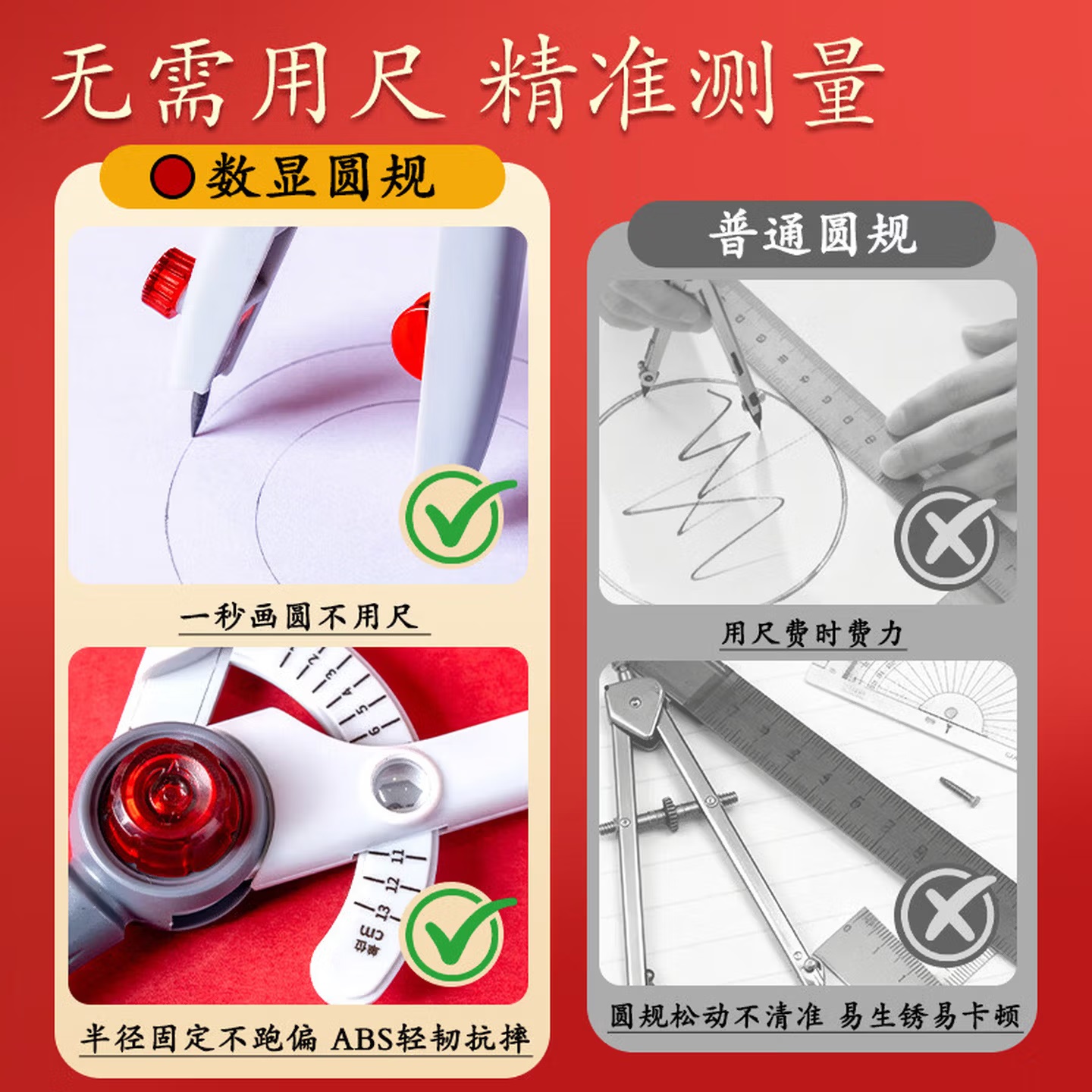日常文具 直尺/卷尺 晨光 ACS908P7 孔庙祈福 零金属 数显 可锁距圆规...