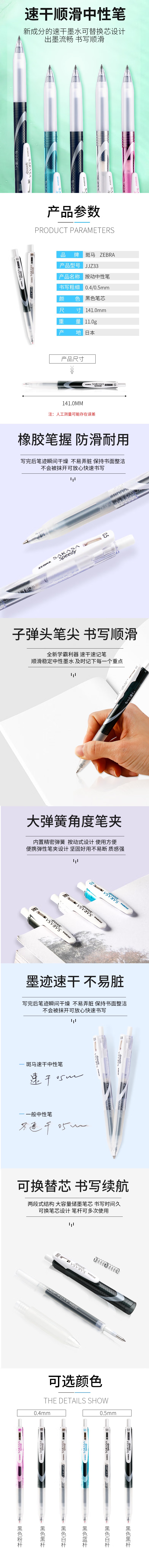 • 商品名称:斑马 JJZ33-BK 按动式 顺利中性笔 0.5mm 黑色