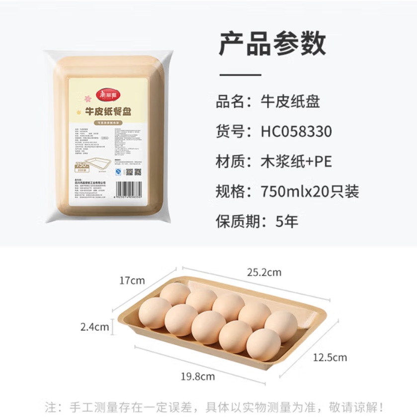 • 商品名称:美丽雅 HC058330 牛皮纸方形餐盘 750ml 20个装
