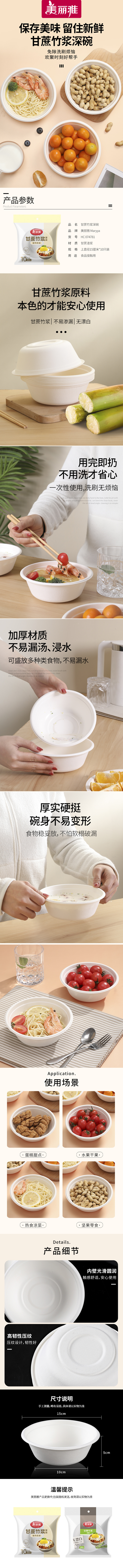 • 商品名称:美丽雅 HC074781 甘蔗竹浆深碗 500ml 10个装