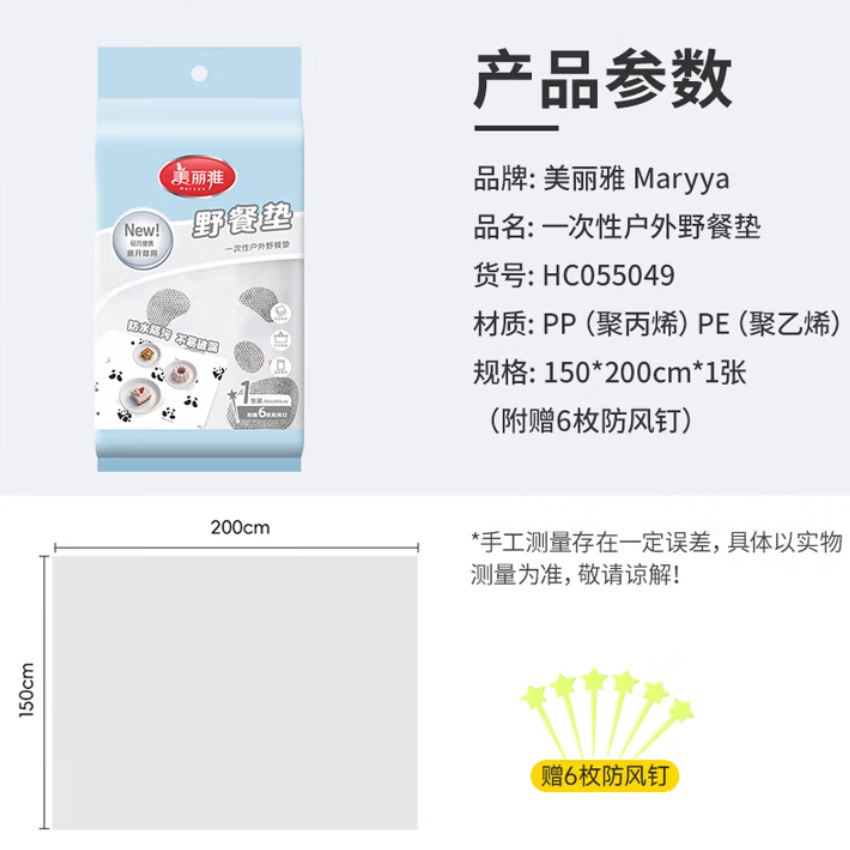 • 商品名称:美丽雅 HC055049 一次性野餐垫 单张装
