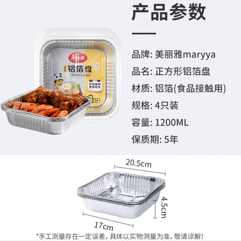 • 商品名称:美丽雅 HC074842 方形铝箔烤盘 4个装