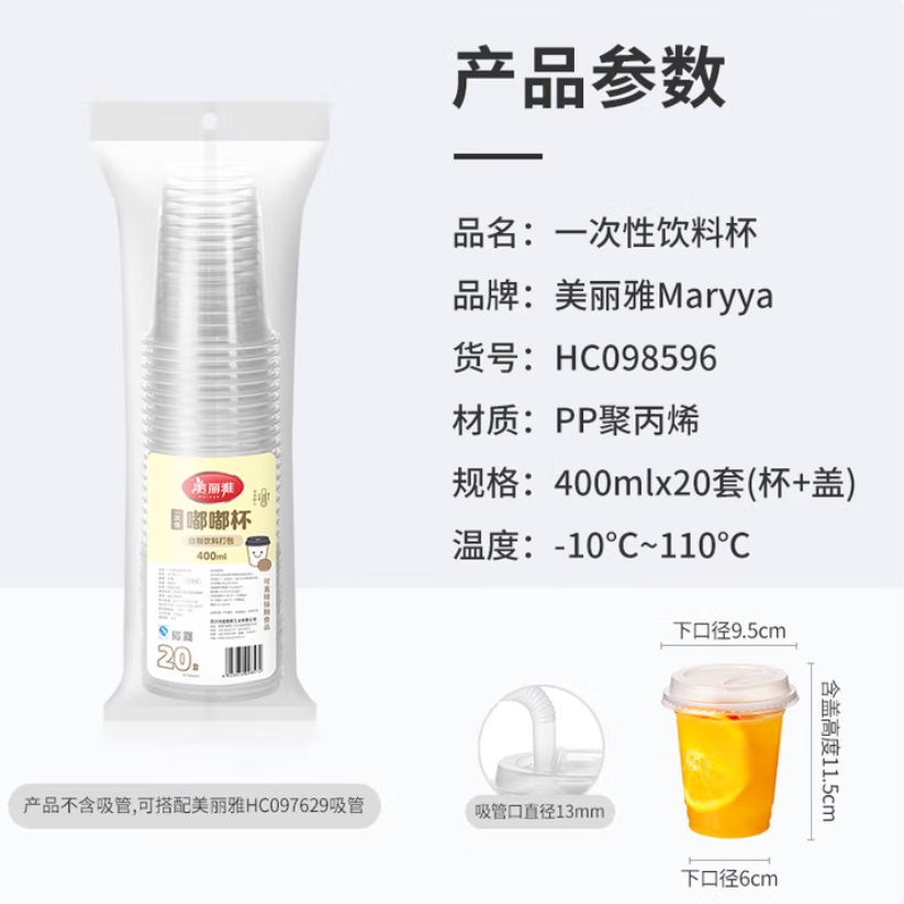 • 商品名称:美丽雅 HC098596 带盖饮料杯 400ml 20套装