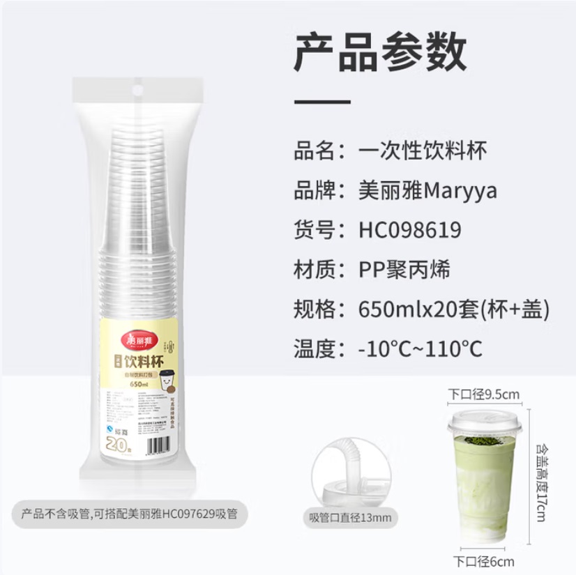 • 商品名称:美丽雅 HC098619 带盖饮料杯 650ml 20套装