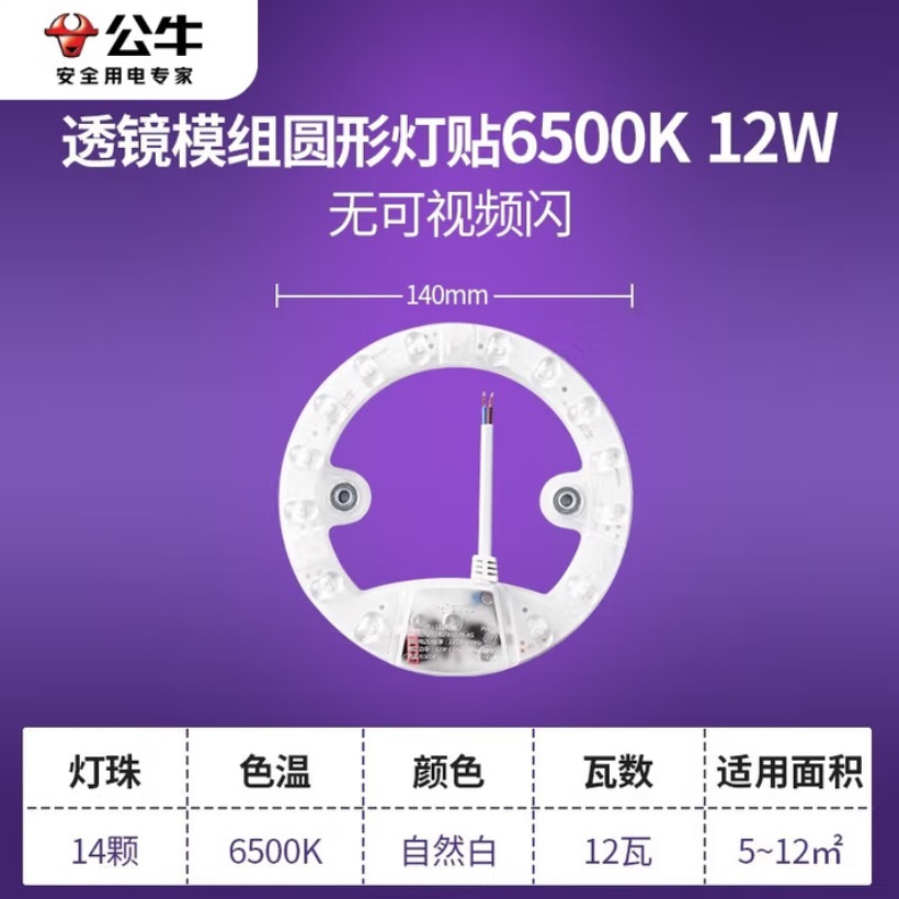 • 商品名称:公牛 E012A 圆形灯贴 12W
