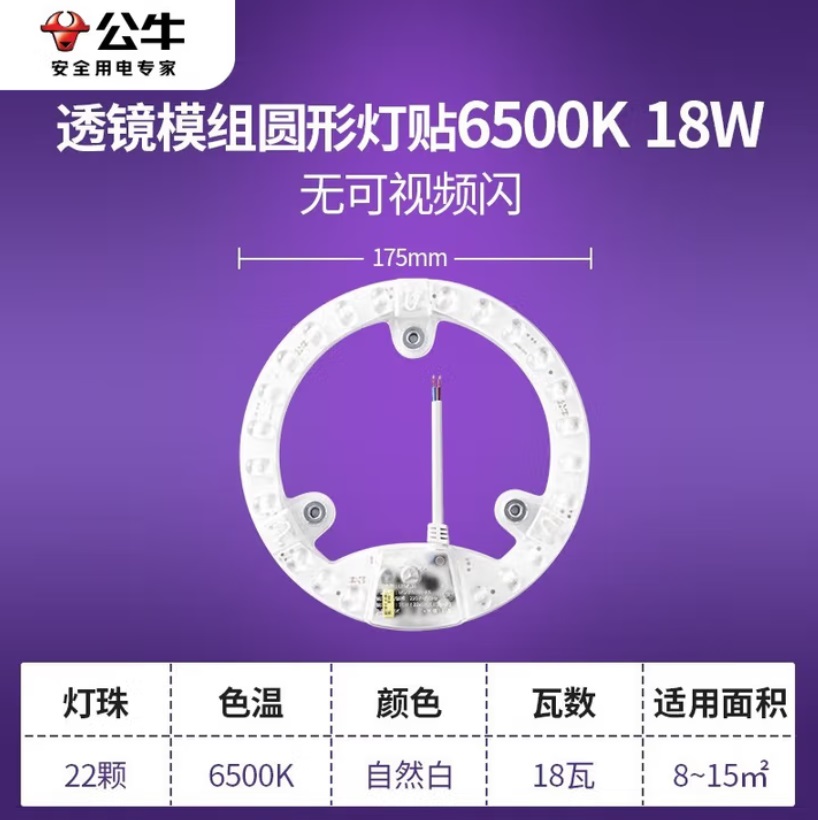 • 商品名称:公牛 E018A 圆形灯贴 18W