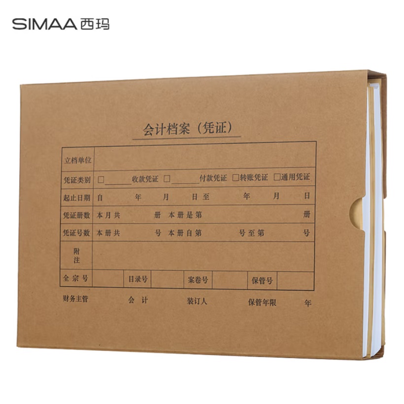 • 商品名称:西玛 6502 A4规格 横版凭证装订盒 单封口 674g牛卡纸