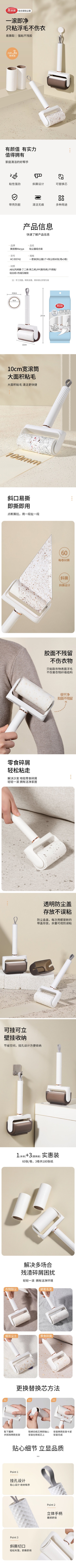 • 商品名称:美丽雅 HC055742 滚筒式 磁吸粘毛器 1+2个组合装 10cm×180撕