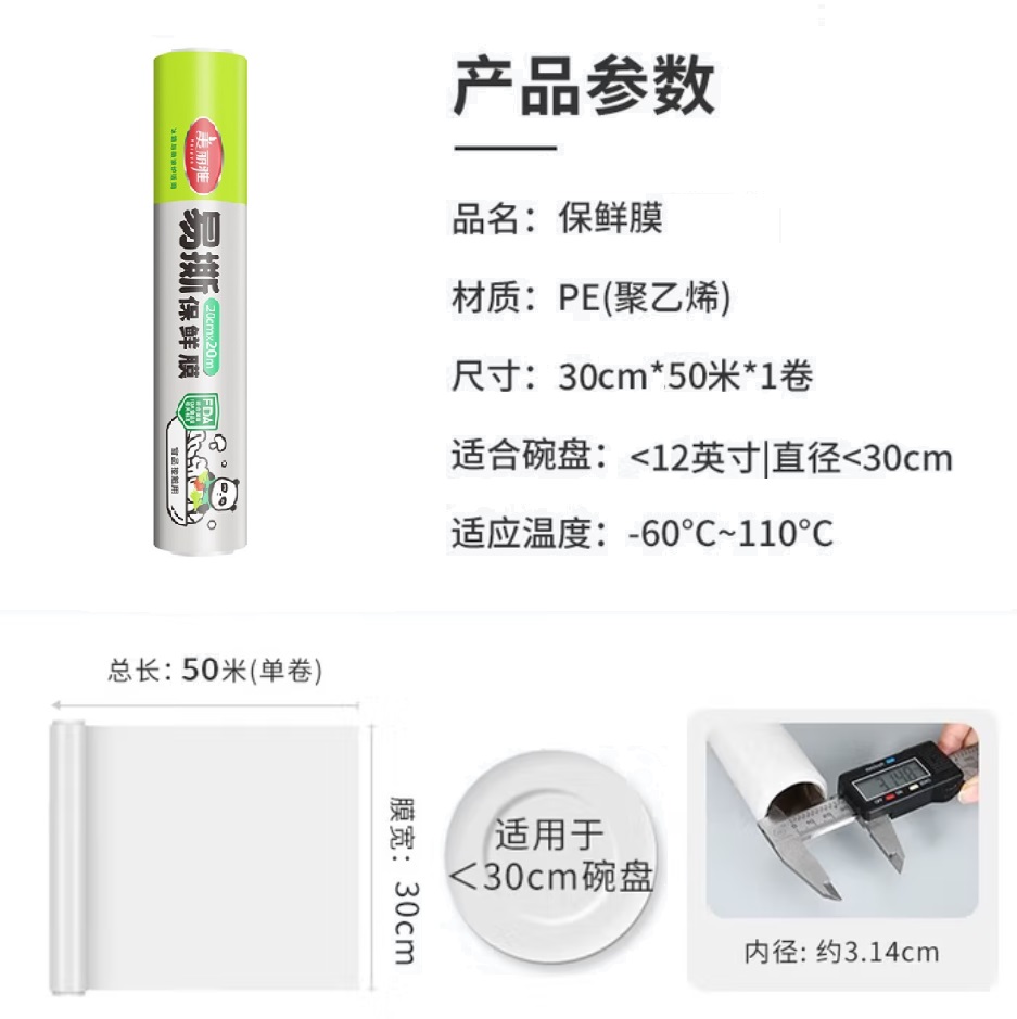 • 商品名称:美丽雅 HC095052 大号 食品级保鲜膜 30cm×50米