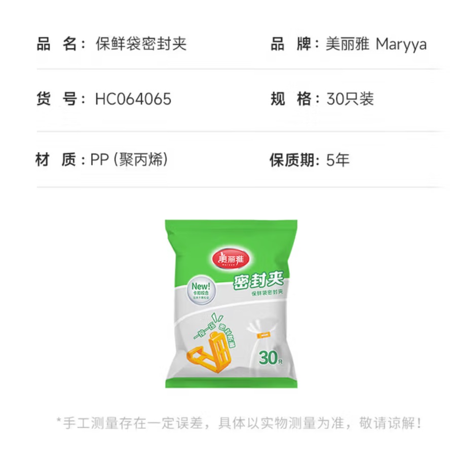 • 商品名称:美丽雅 HC064065 食品保鲜袋密封夹 30只装