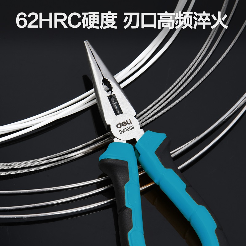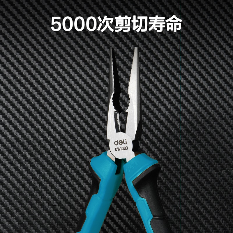 • 商品名称:得力DW1003 胶柄 6英寸 钒钢尖嘴钳 工业级 断线钳