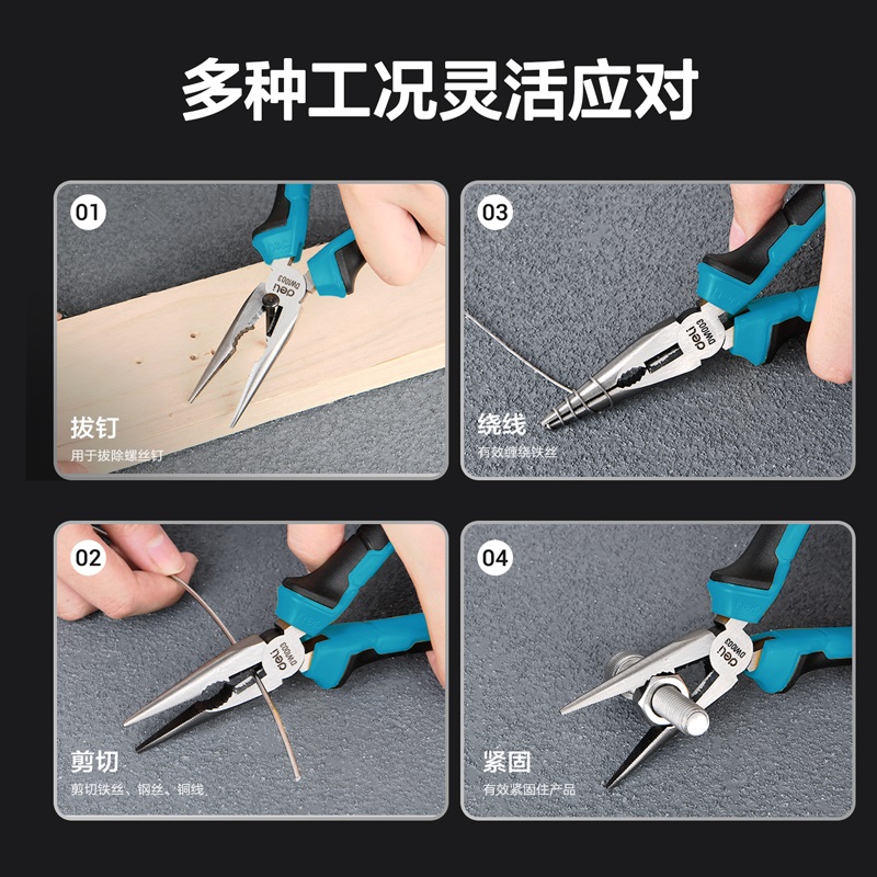 办公生活 日常照明 得力DW1003 胶柄 6英寸 钒钢尖嘴钳 工业级 断线钳...