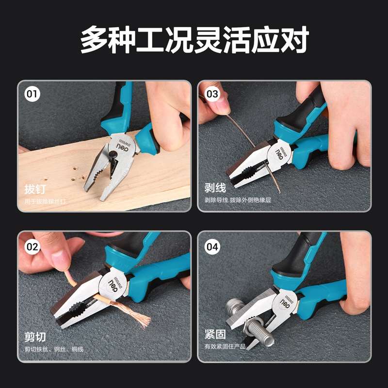办公生活 日常照明 得力DW1000 胶柄 6英寸 钒钢钢丝钳 工业级 老虎钳...