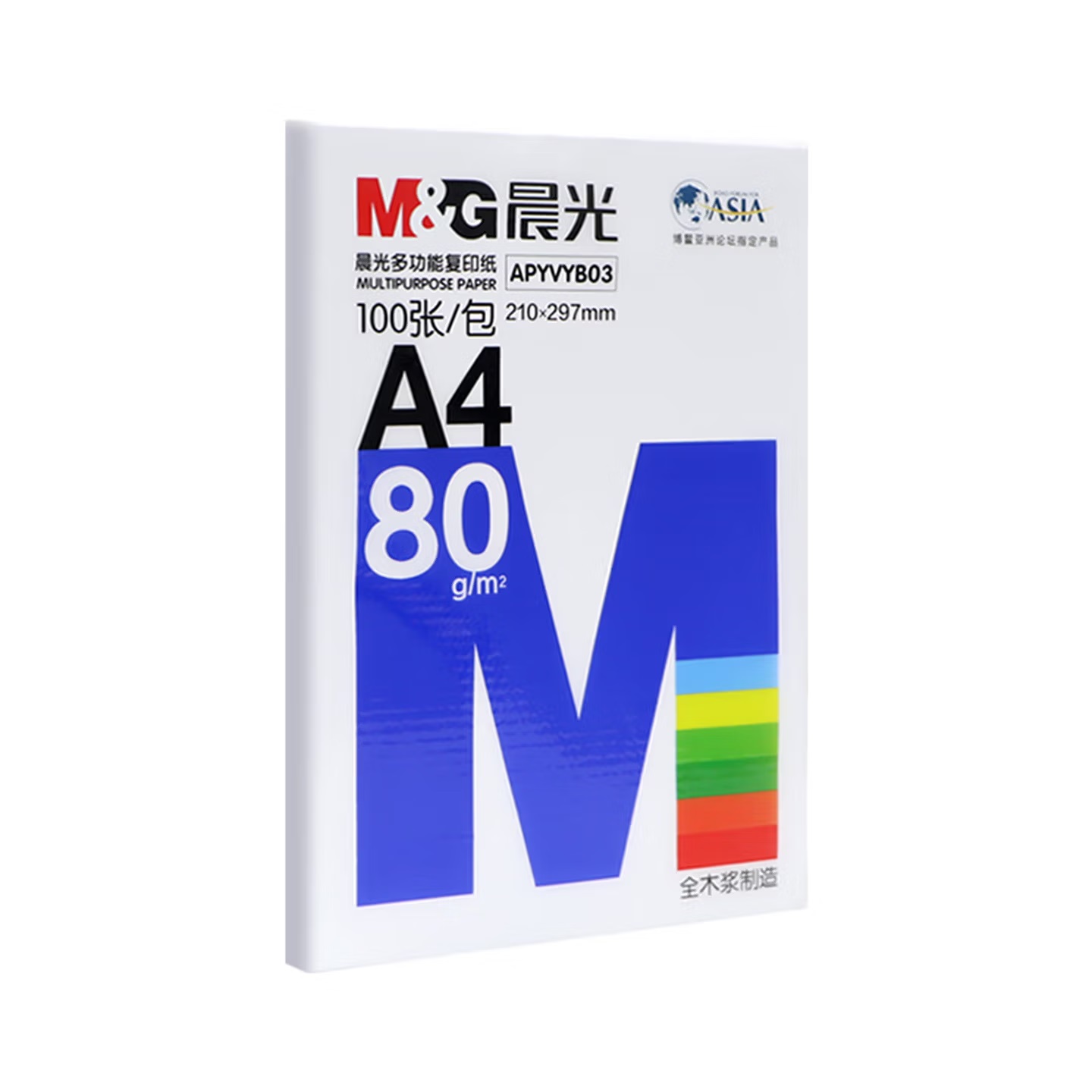 办公用纸 复印纸 晨光 A4 全木桨复印纸80g 100张×1包 单张尺寸 210mm×297mm...