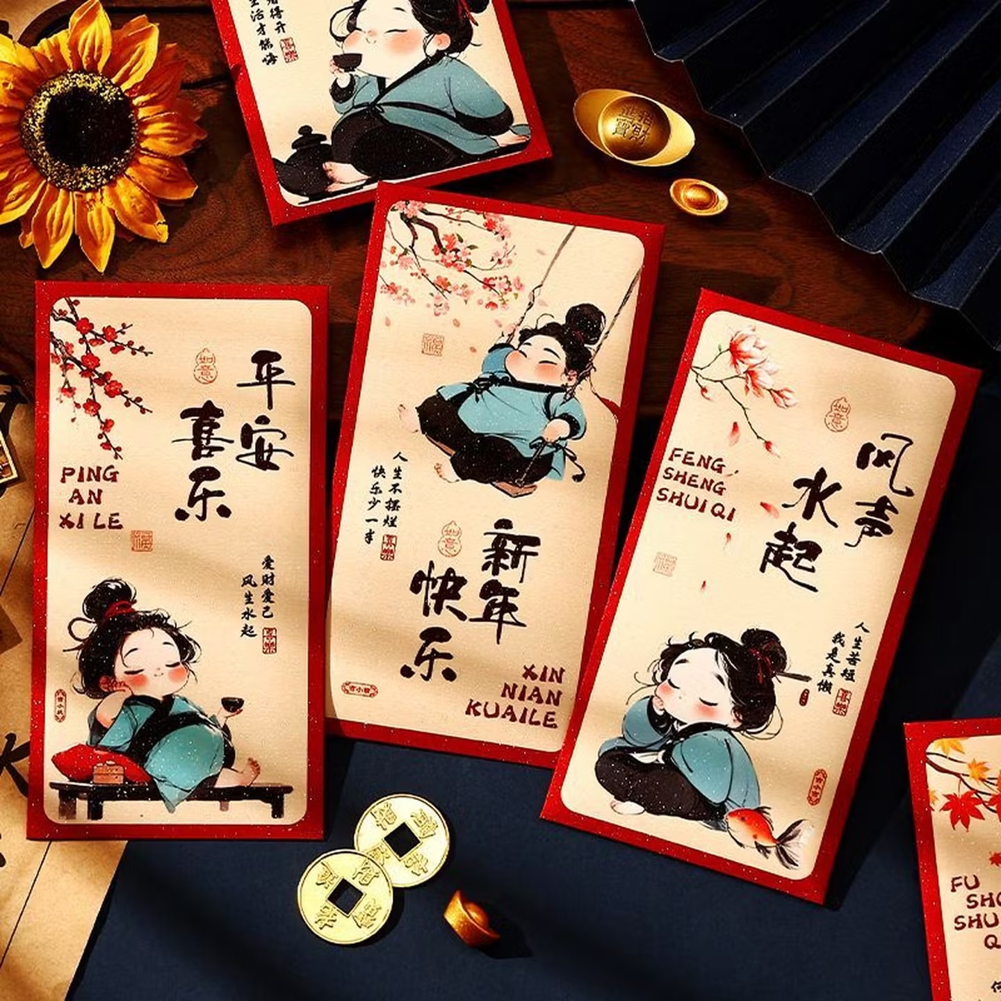 泓喆 C24 福瘦双全 新款国潮彩印红包 6个装 85mm×165mm