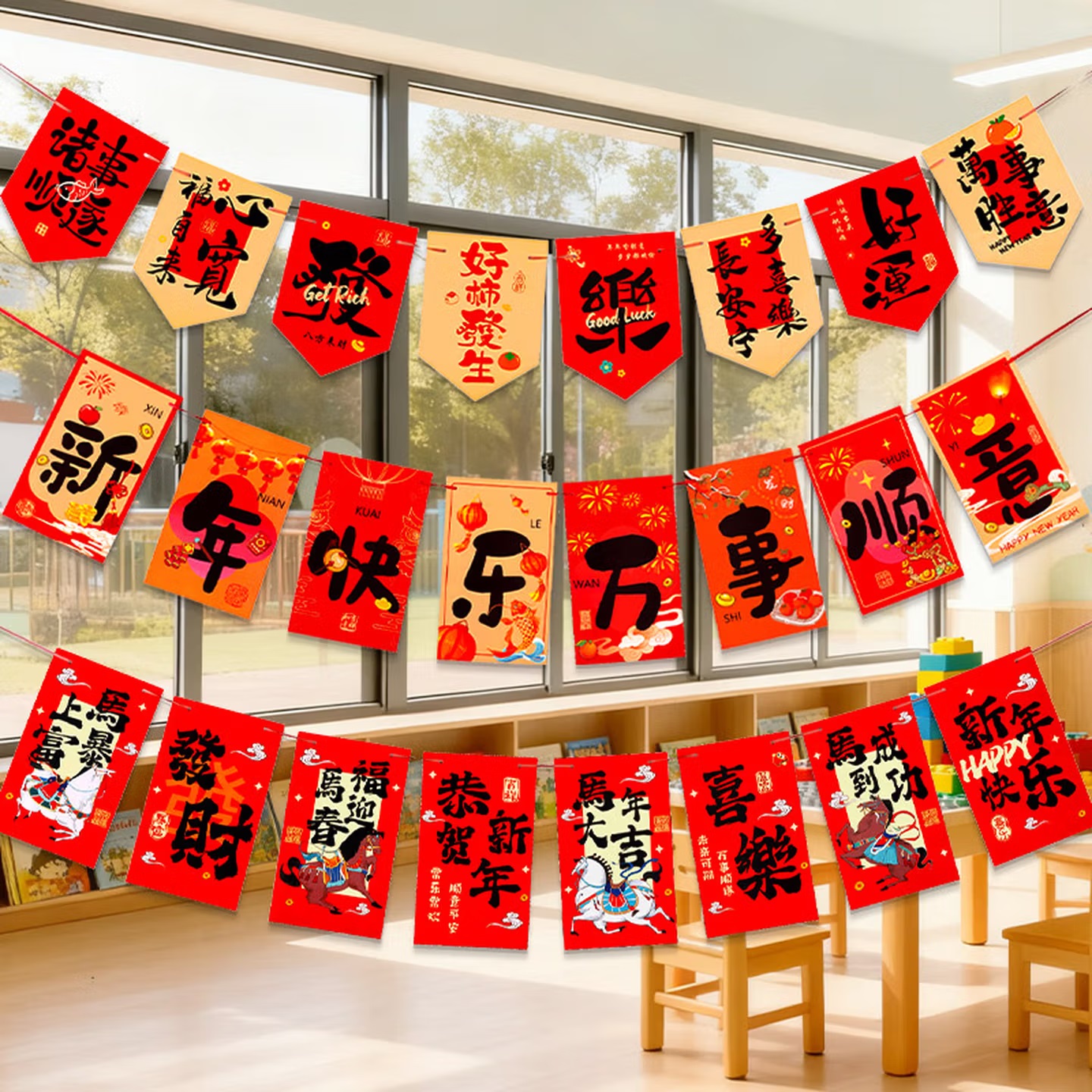 曦米HL76新年装饰氛围布置节庆拉旗 马年大吉 单条装 3米