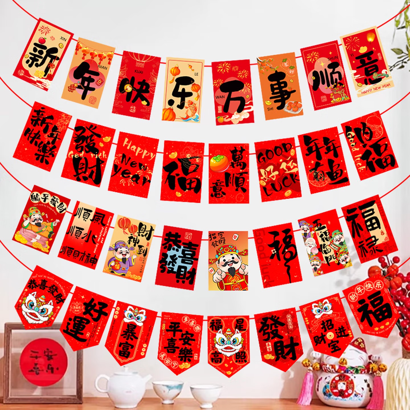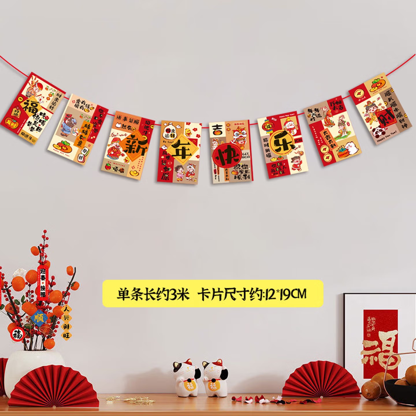 曦米HY63新年装饰氛围布置节庆拉旗 新年快乐 单条装 3米