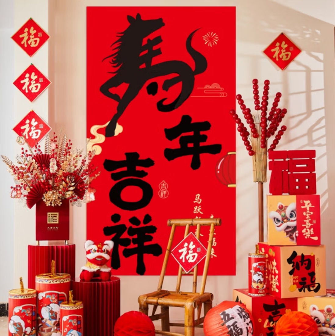 泓喆 W10 马年大吉 元旦新年装饰挂布 年会场景道具 100cm×150cm