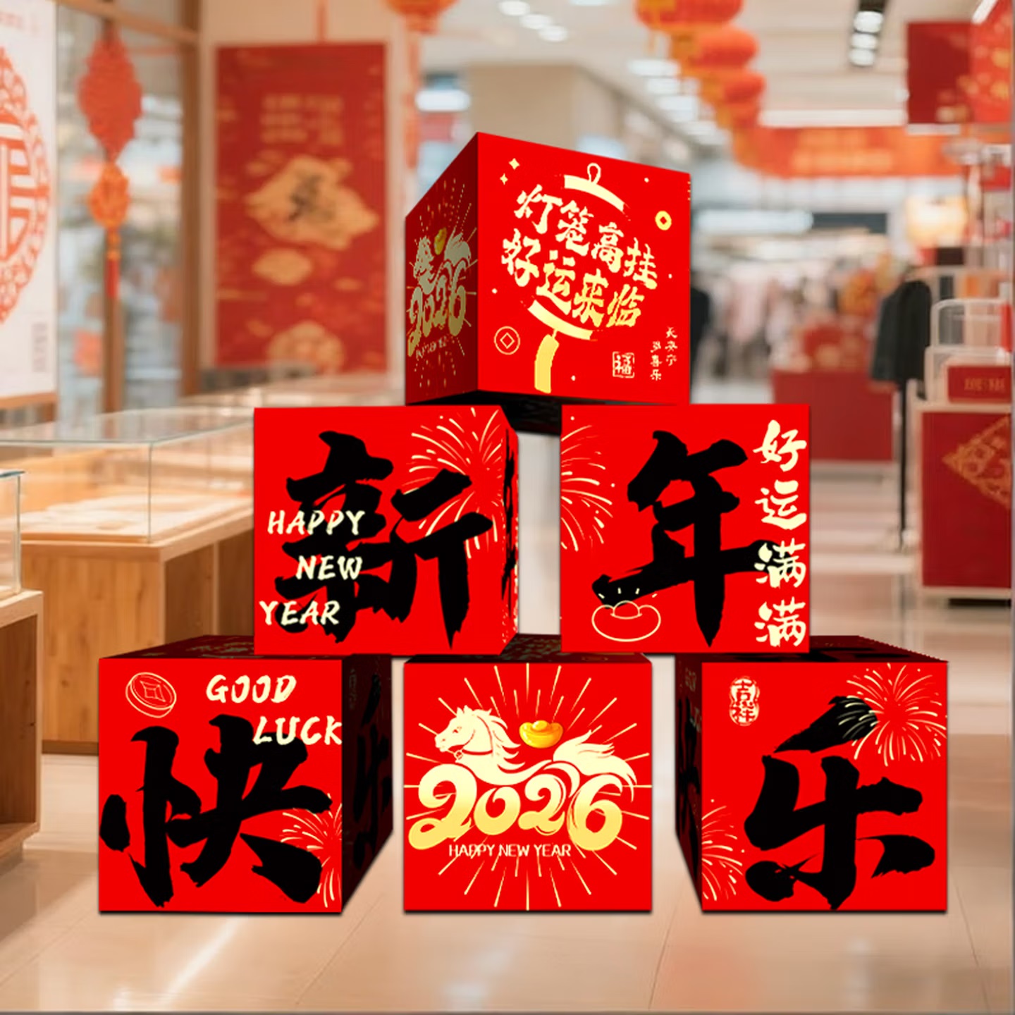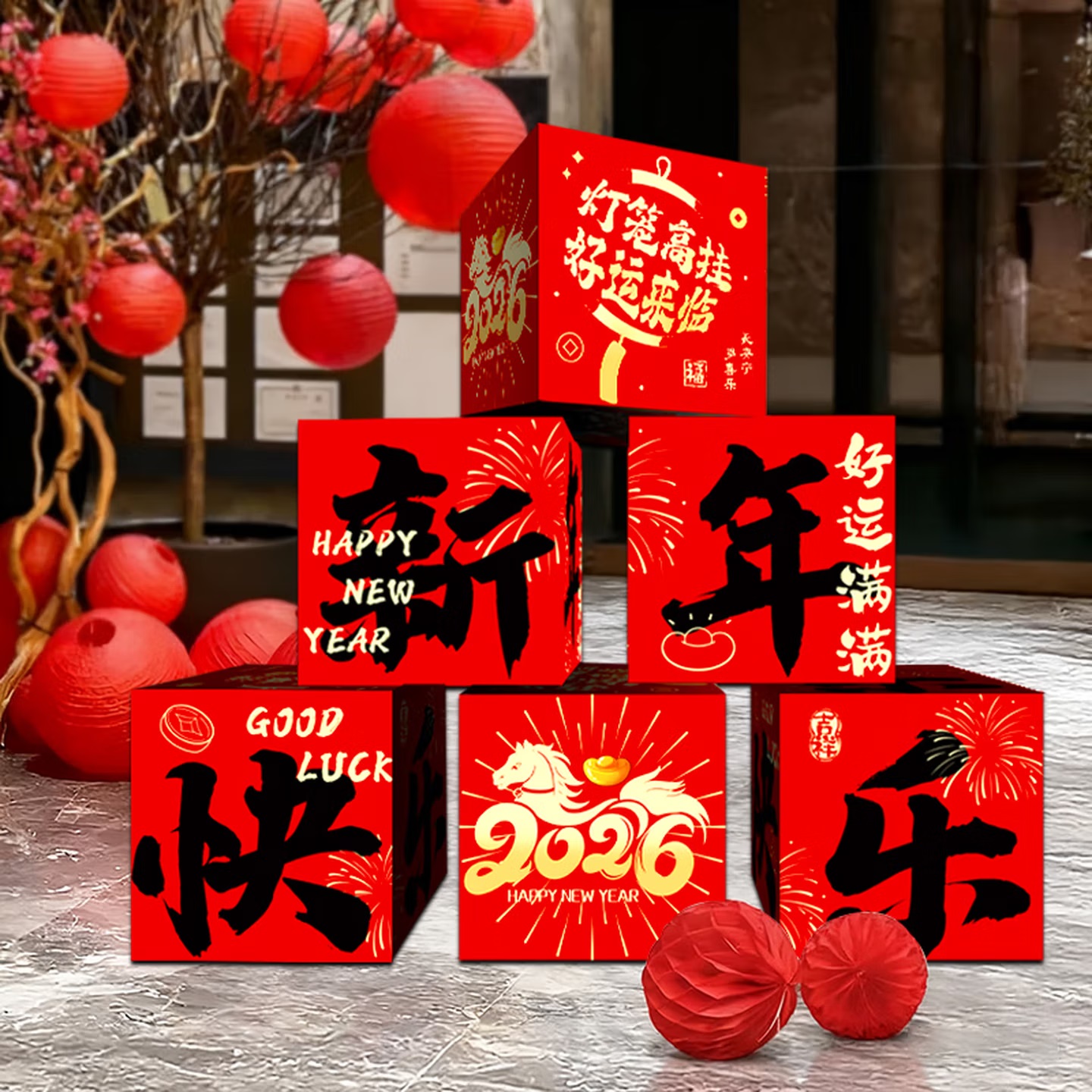 • 商品名称:曦米HL08新年装饰氛围布置堆头礼盒 新年快乐 单个装