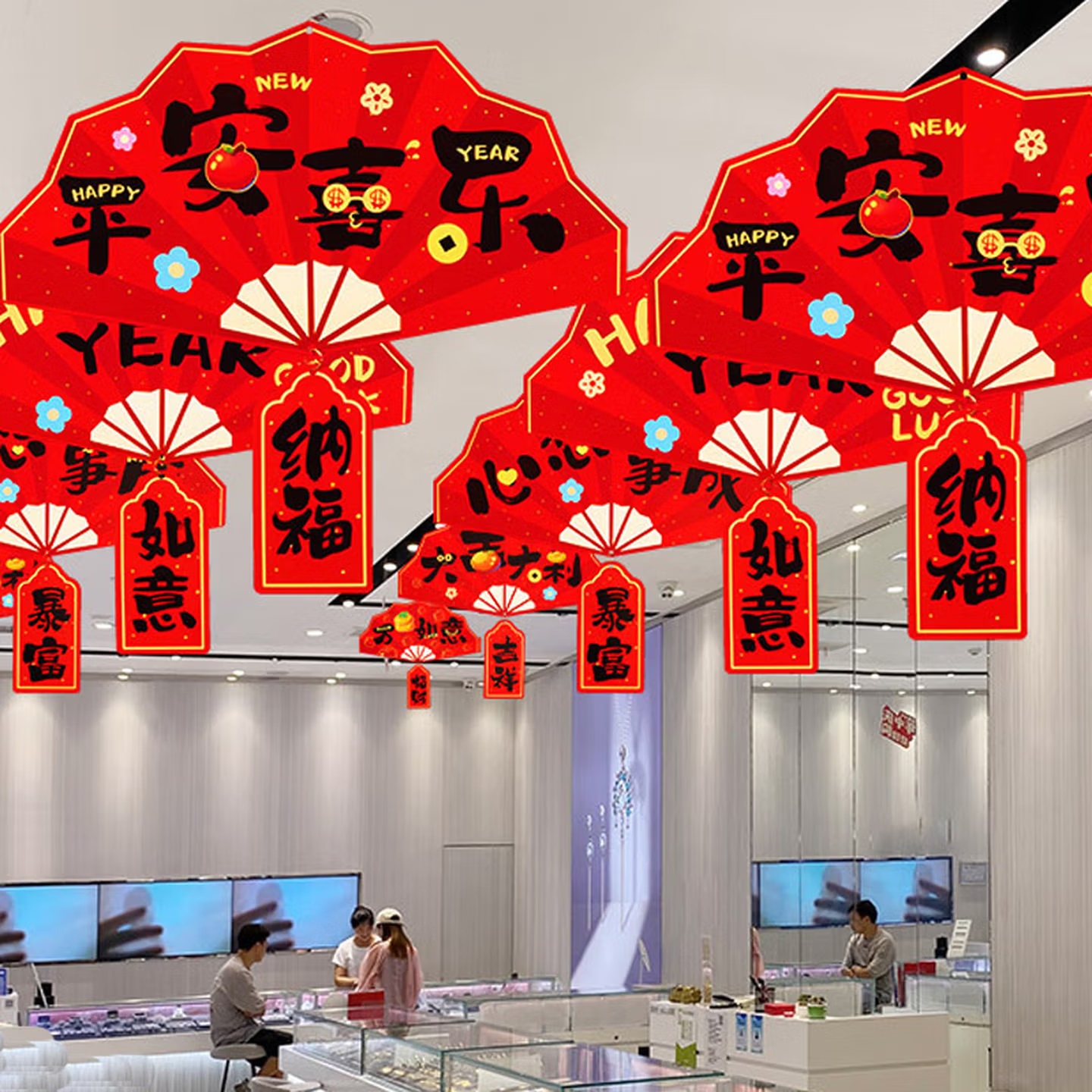会议展示 年会庆典 曦米HL30新年装饰氛围布置吊旗挂件 中式折扇 5个套装...