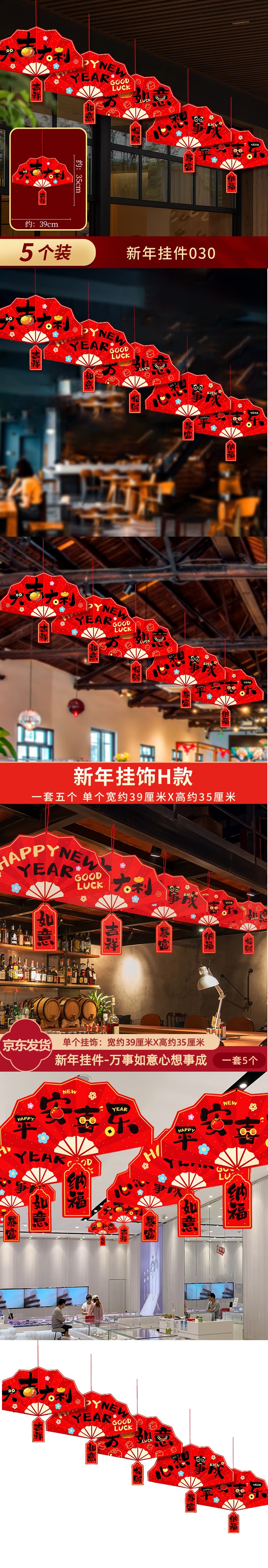 • 商品名称:曦米HL30新年装饰氛围布置吊旗挂件 中式折扇 5个套装