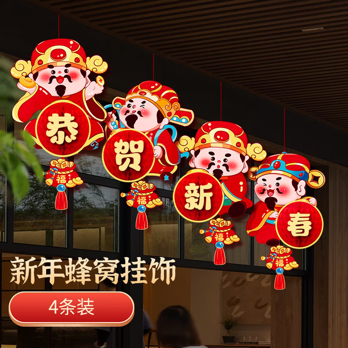 • 商品名称:曦米HL03新年装饰氛围布置吊旗挂件 恭贺新春 4个套装