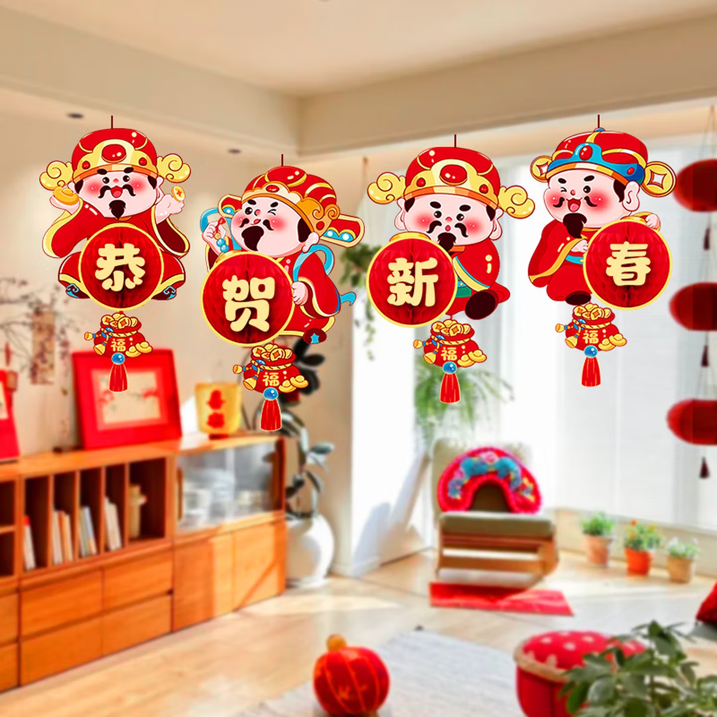 曦米HL03新年装饰氛围布置吊旗挂件 恭贺新春 4个套装