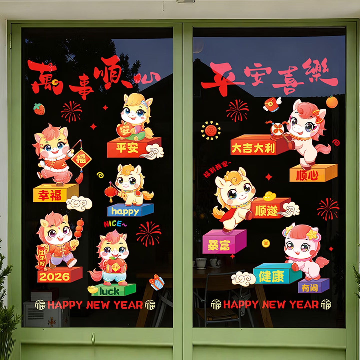 曦米 SM217 新年装饰窗花橱窗布置贴 静电窗贴 马年快乐