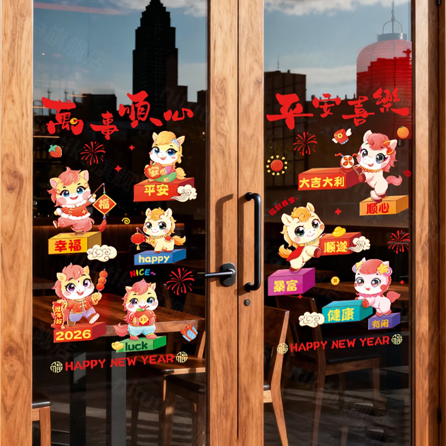 会议展示 年会庆典 曦米 SM217 新年装饰窗花橱窗布置贴 静电窗贴 马年快乐...