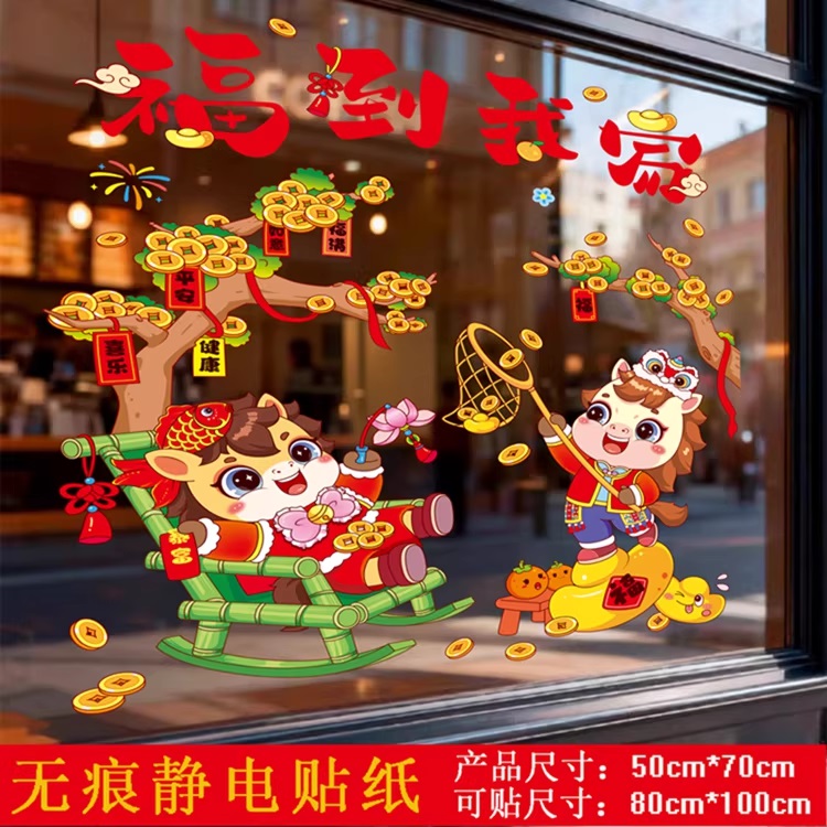 • 商品名称:曦米 HY211 新年装饰窗花橱窗布置贴 静电窗贴 福到我家