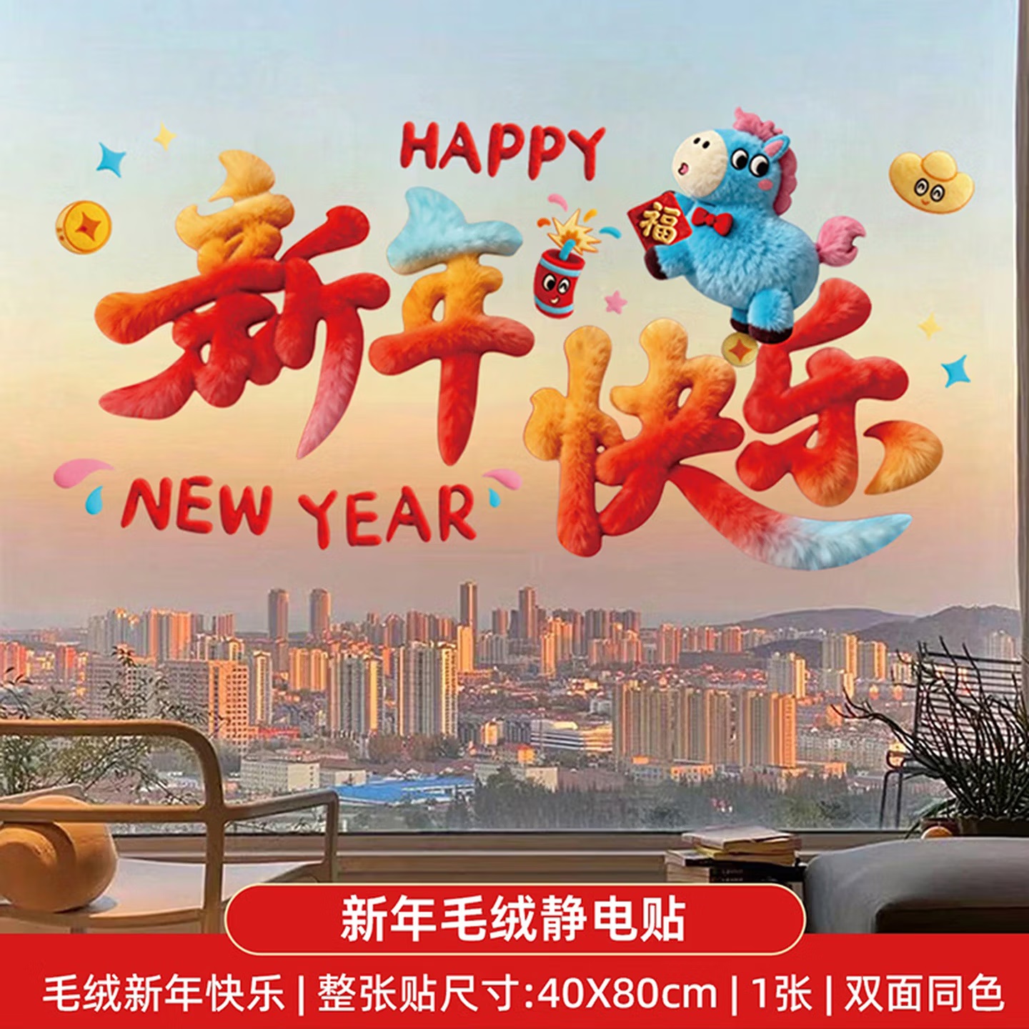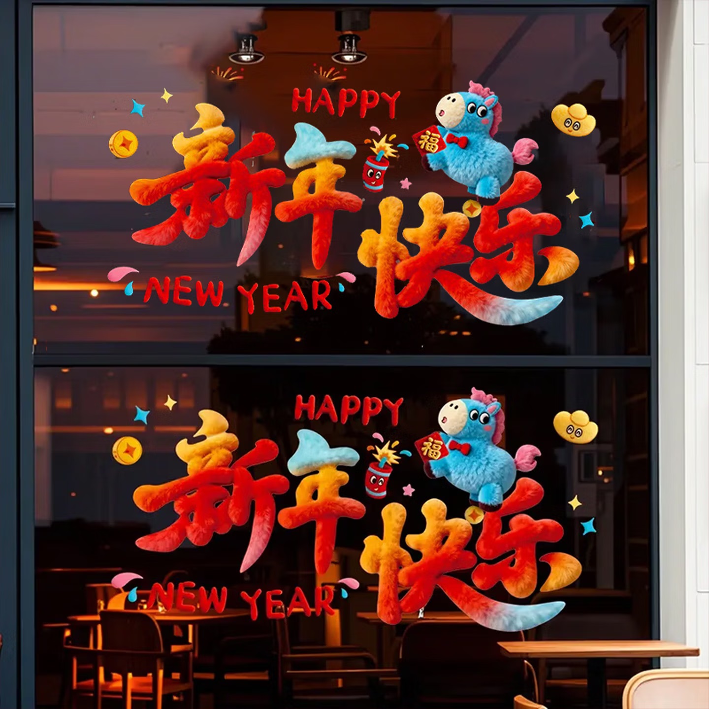 • 商品名称:曦米 HL02 新年装饰窗花橱窗布置贴 静电窗贴 马年新春