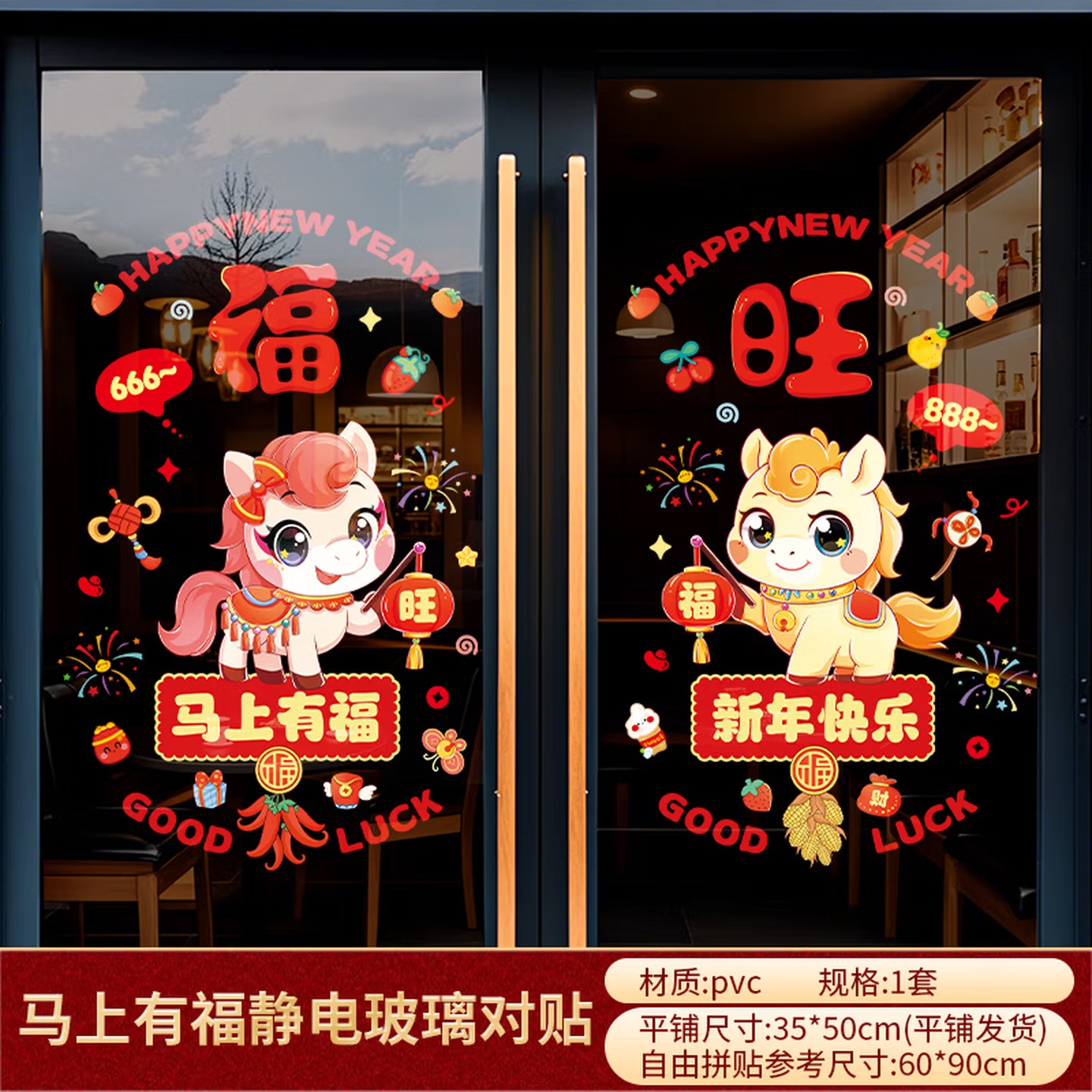 • 商品名称:曦米 HM207 新年装饰窗花橱窗布置贴 静电窗贴 福旺