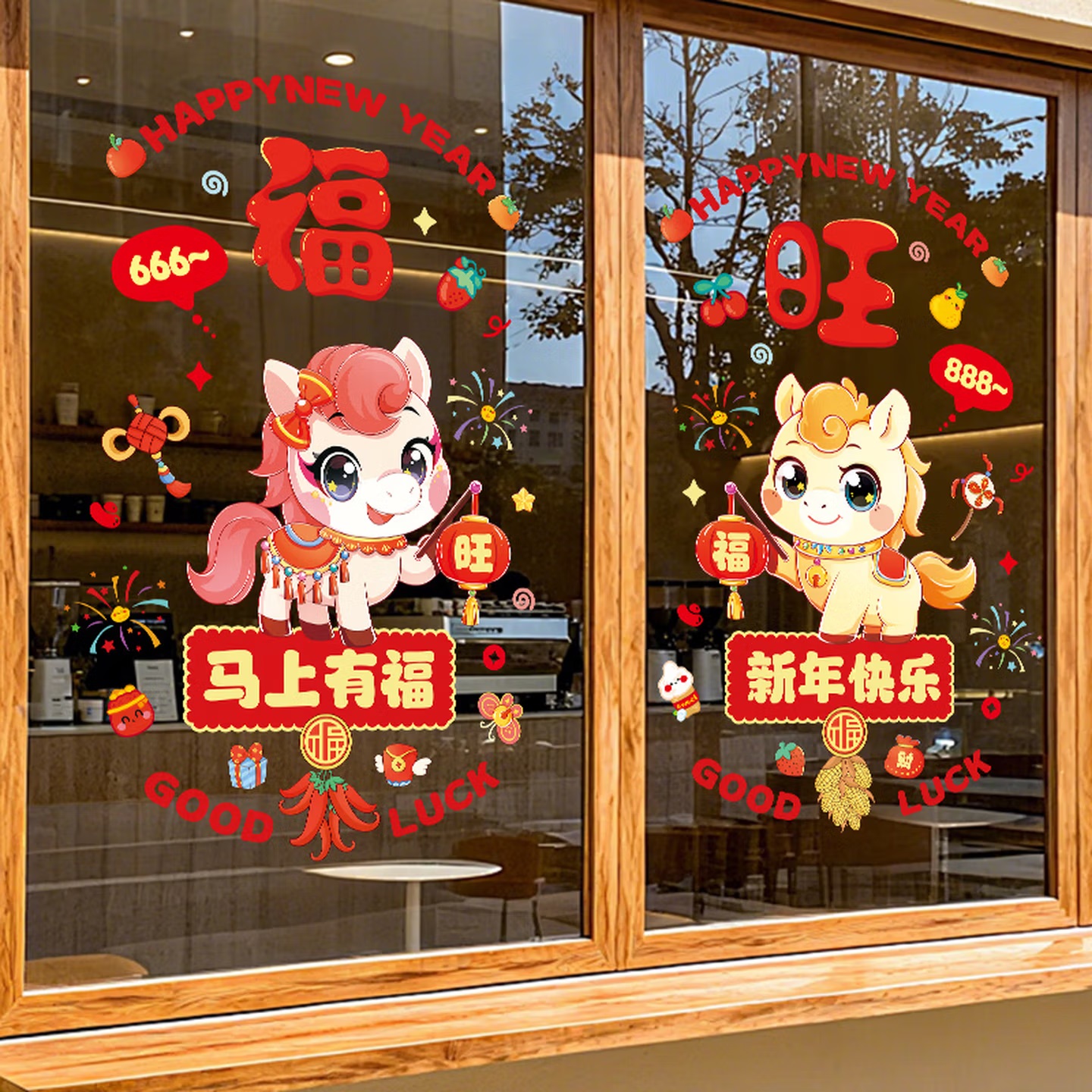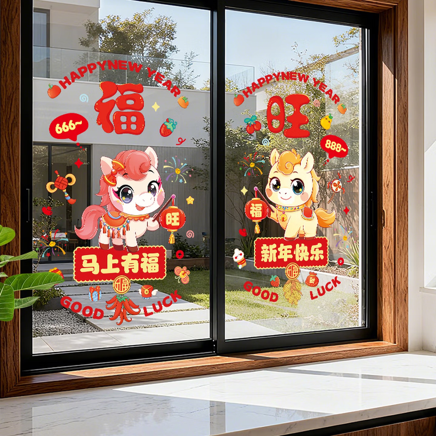 会议展示 年会庆典 曦米 HM207 新年装饰窗花橱窗布置贴 静电窗贴 福旺...