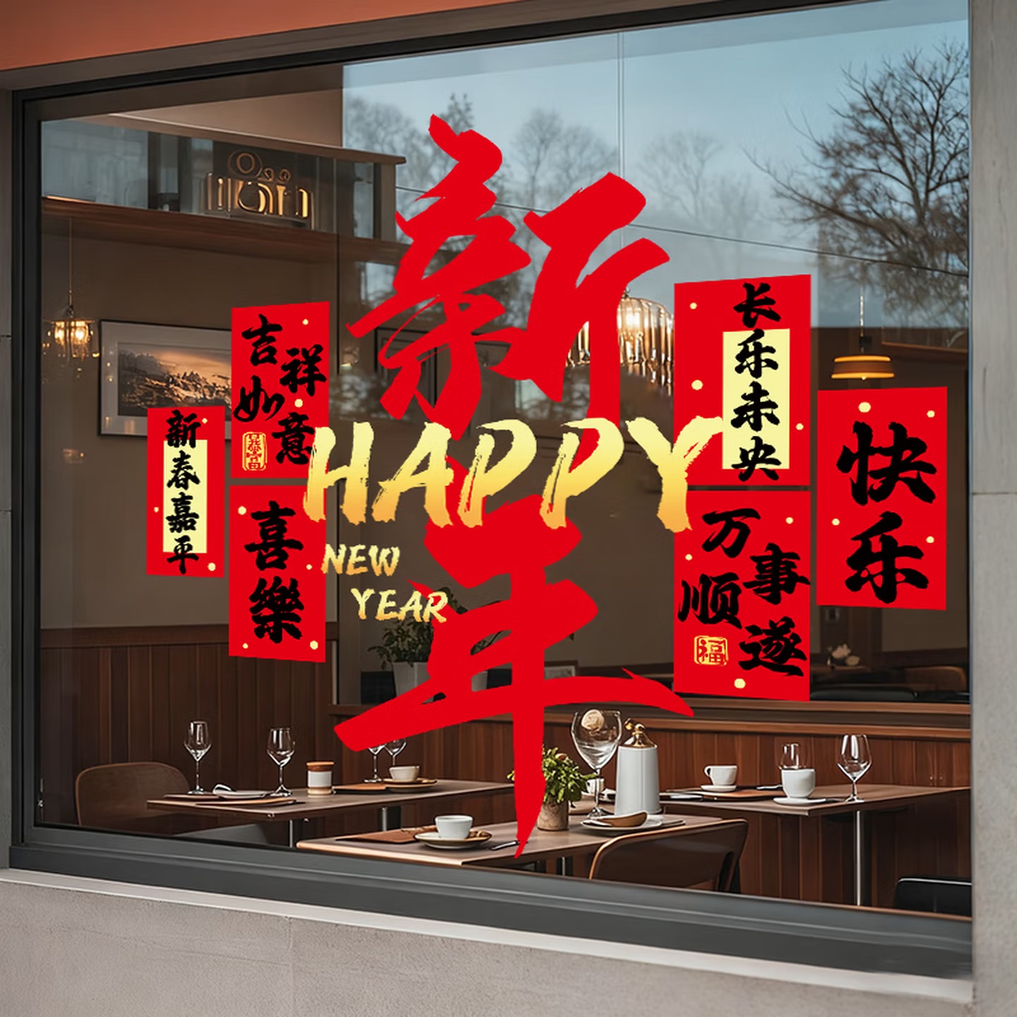 • 商品名称:曦米 HL132 新年装饰窗花橱窗布置贴 静电窗贴 新年
