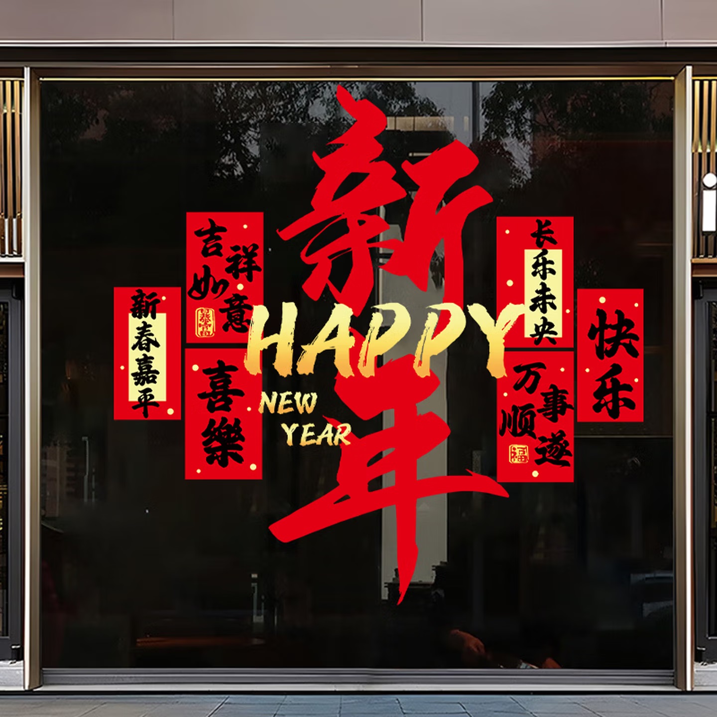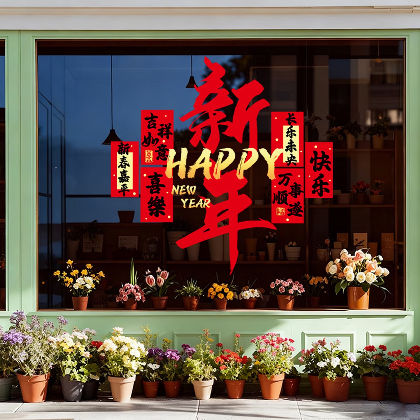 曦米 HL132 新年装饰窗花橱窗布置贴 静电窗贴 新年