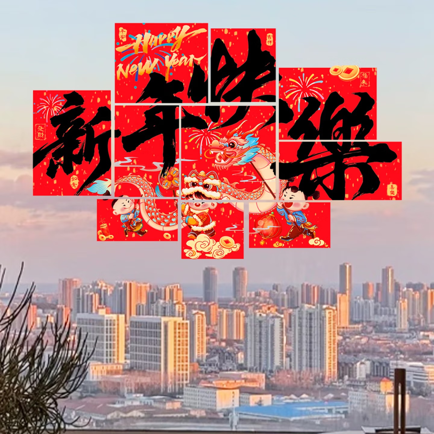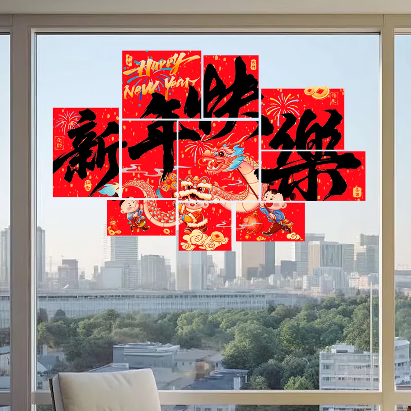 • 商品名称:曦米 HL128 新年装饰窗花橱窗布置贴 静电窗贴 新年快乐