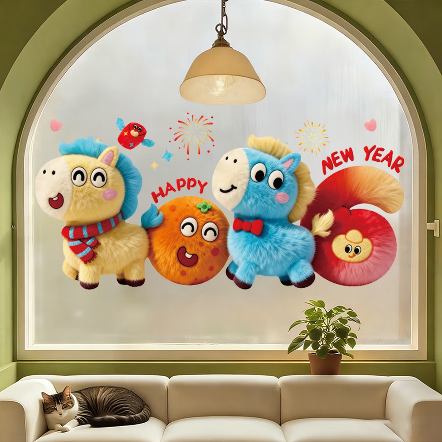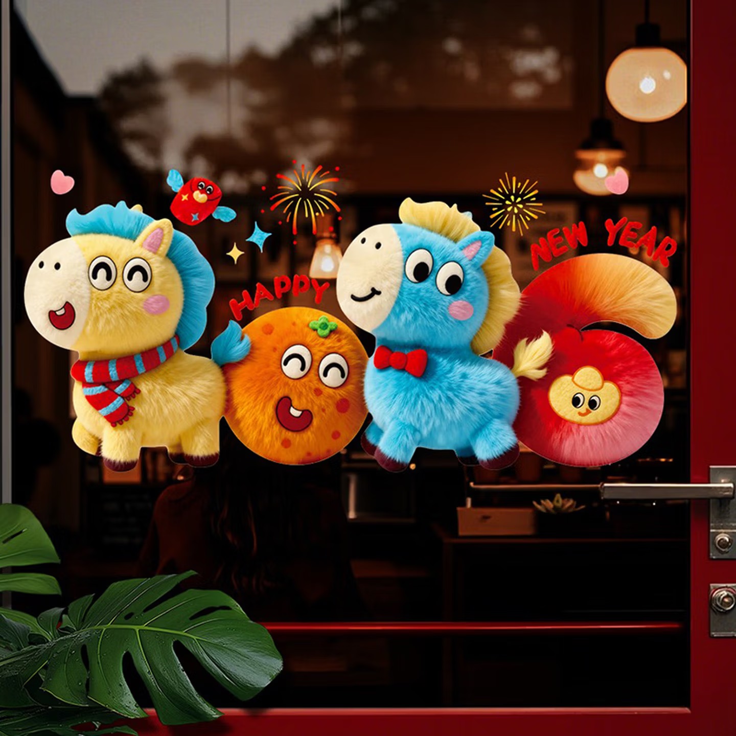 曦米 HL01 新年装饰窗花橱窗布置贴 静电窗贴 5D马年-D款