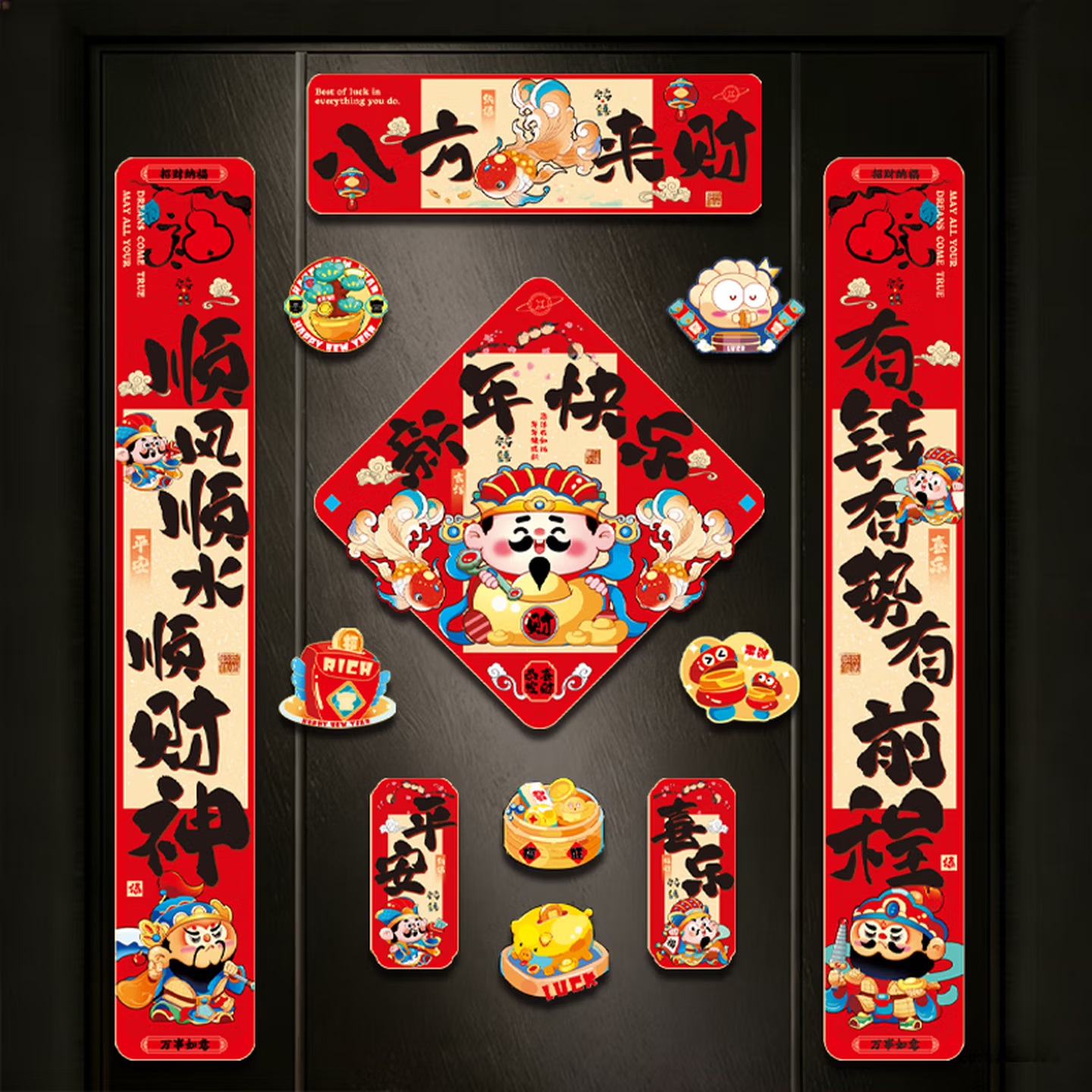 • 商品名称:曦米 HL15 全磁吸对联门联福字冰箱贴 八方来财-A款 12件套