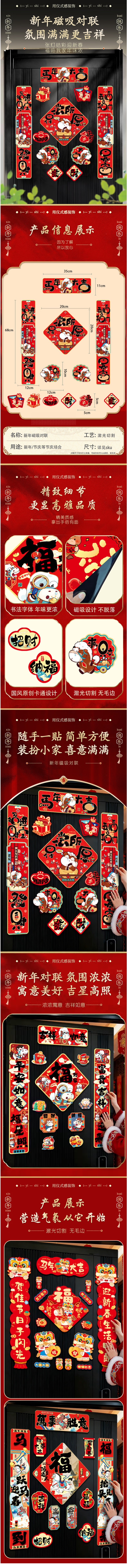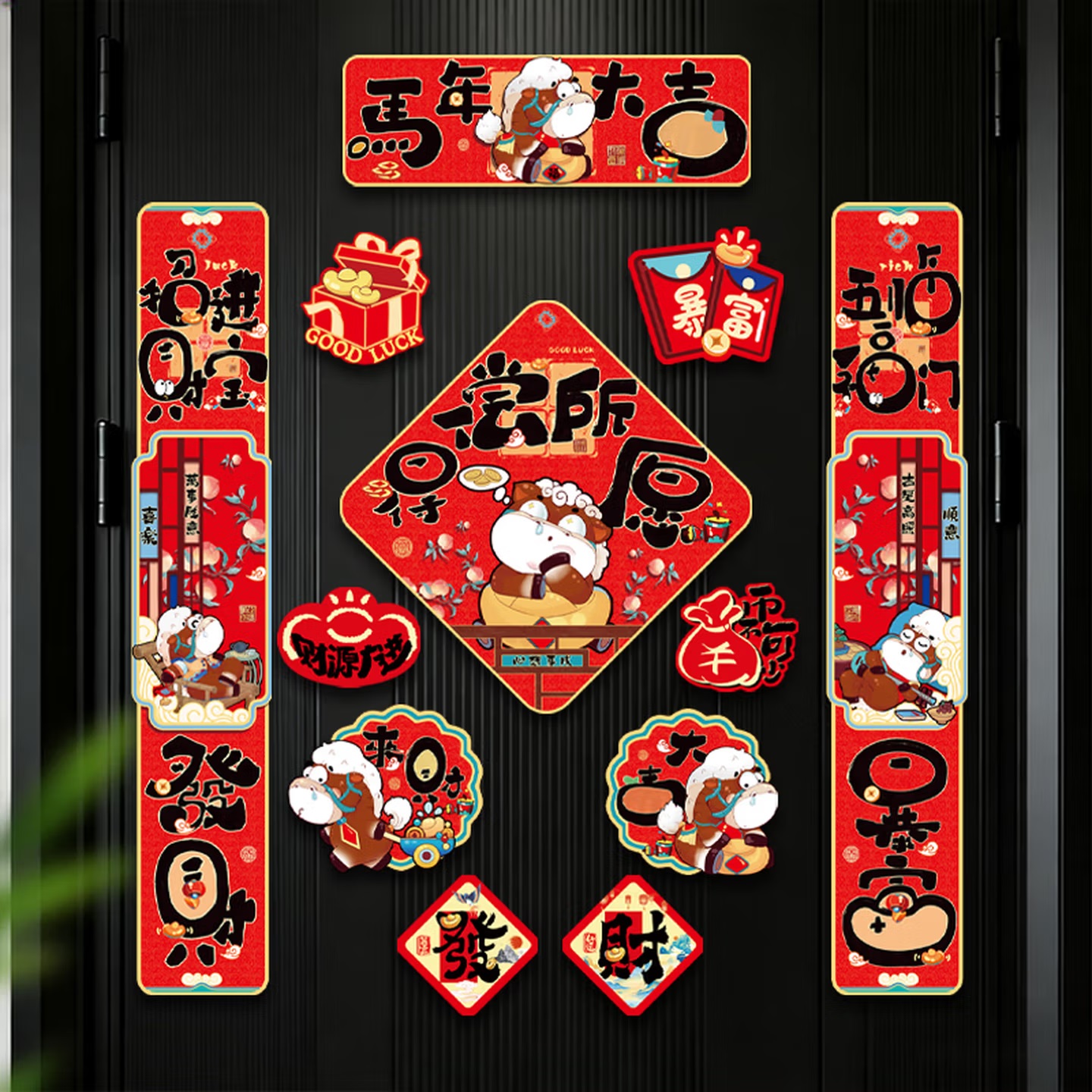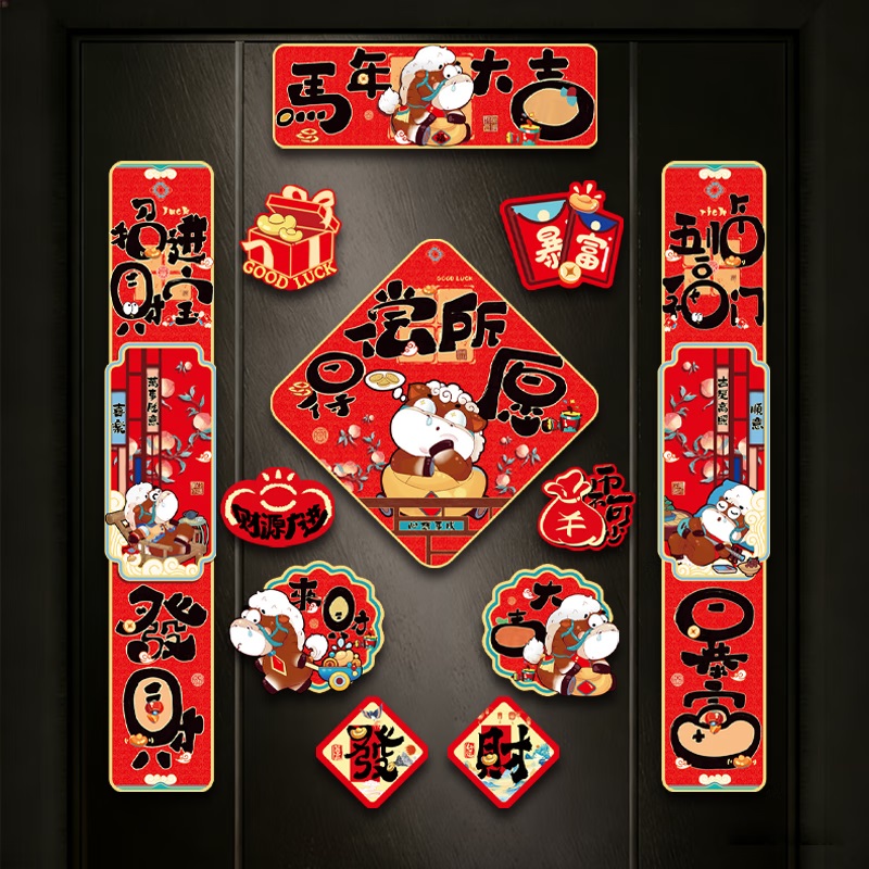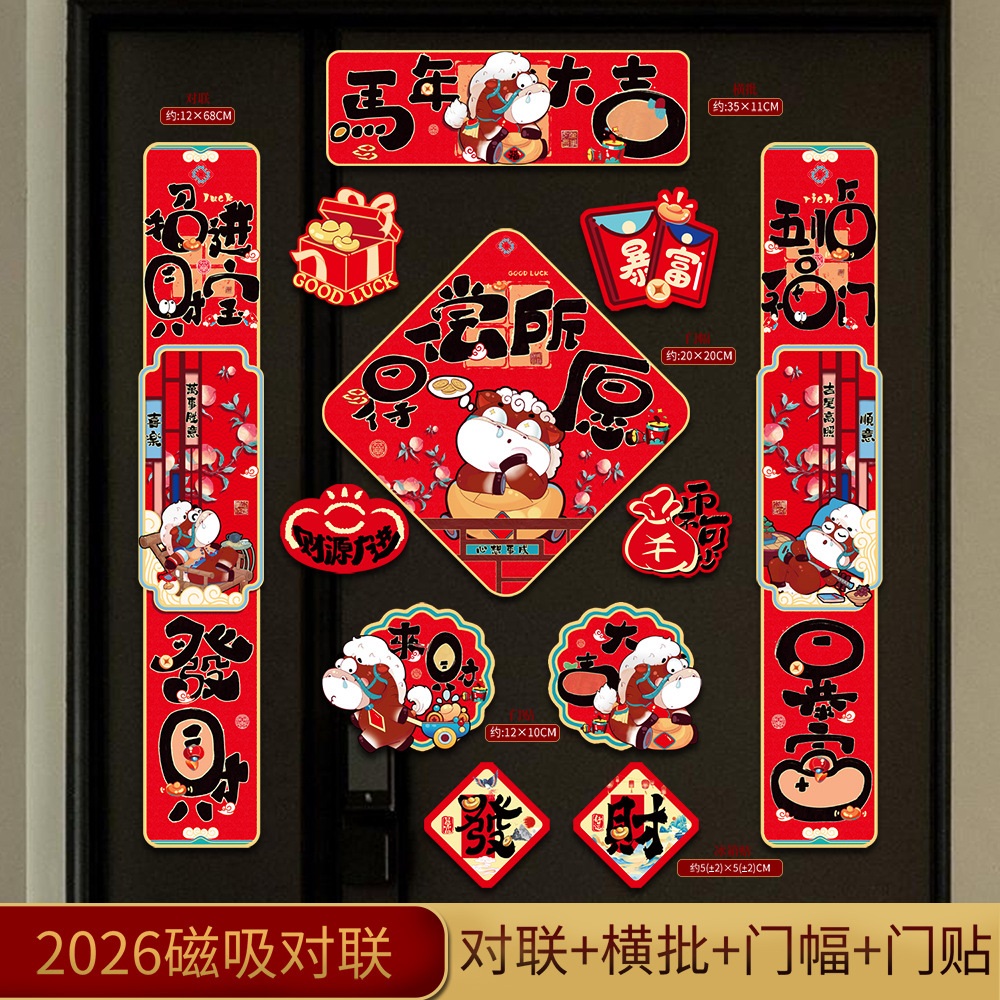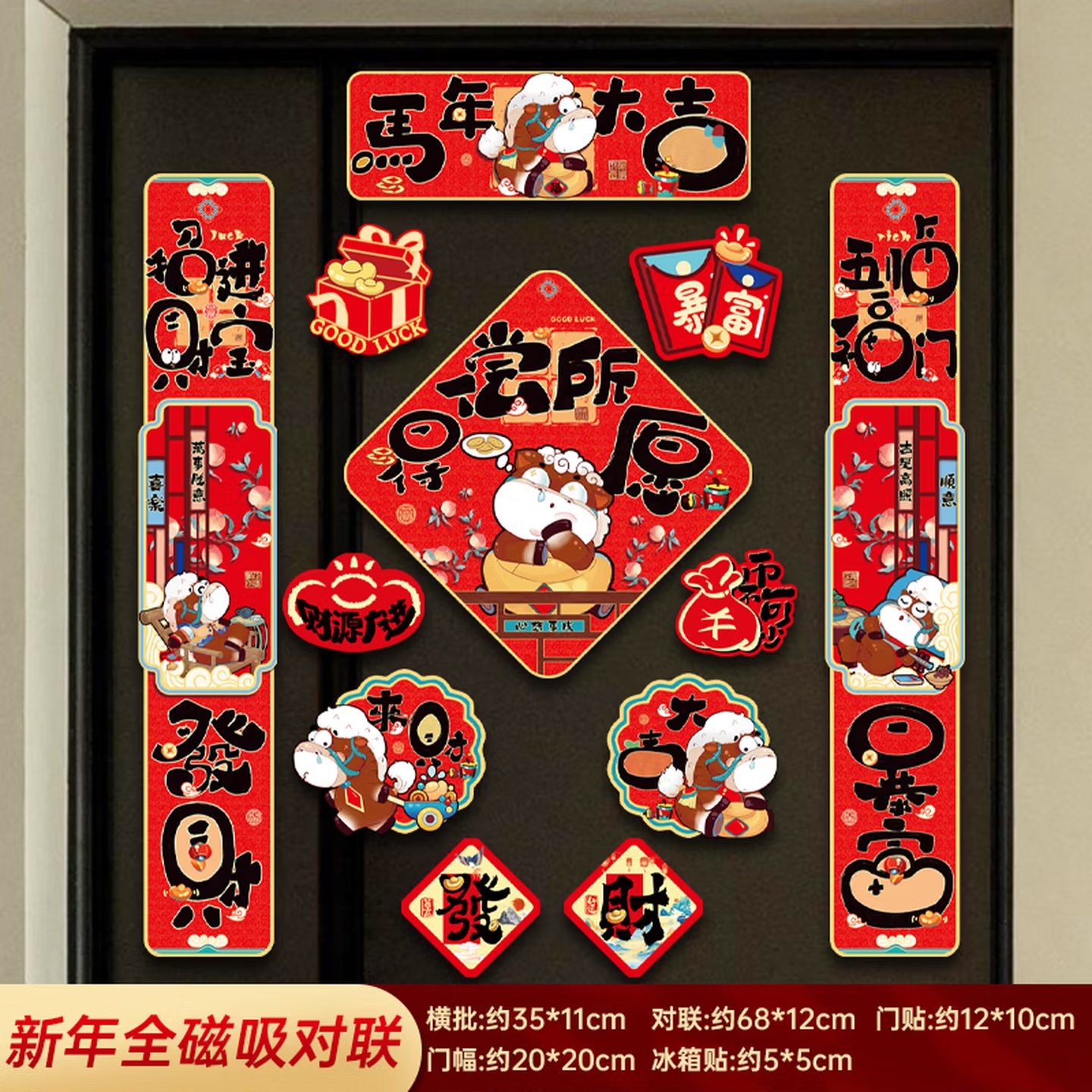 • 商品名称:曦米 HL12 全磁吸对联门联福字冰箱贴 马年大吉 12件套